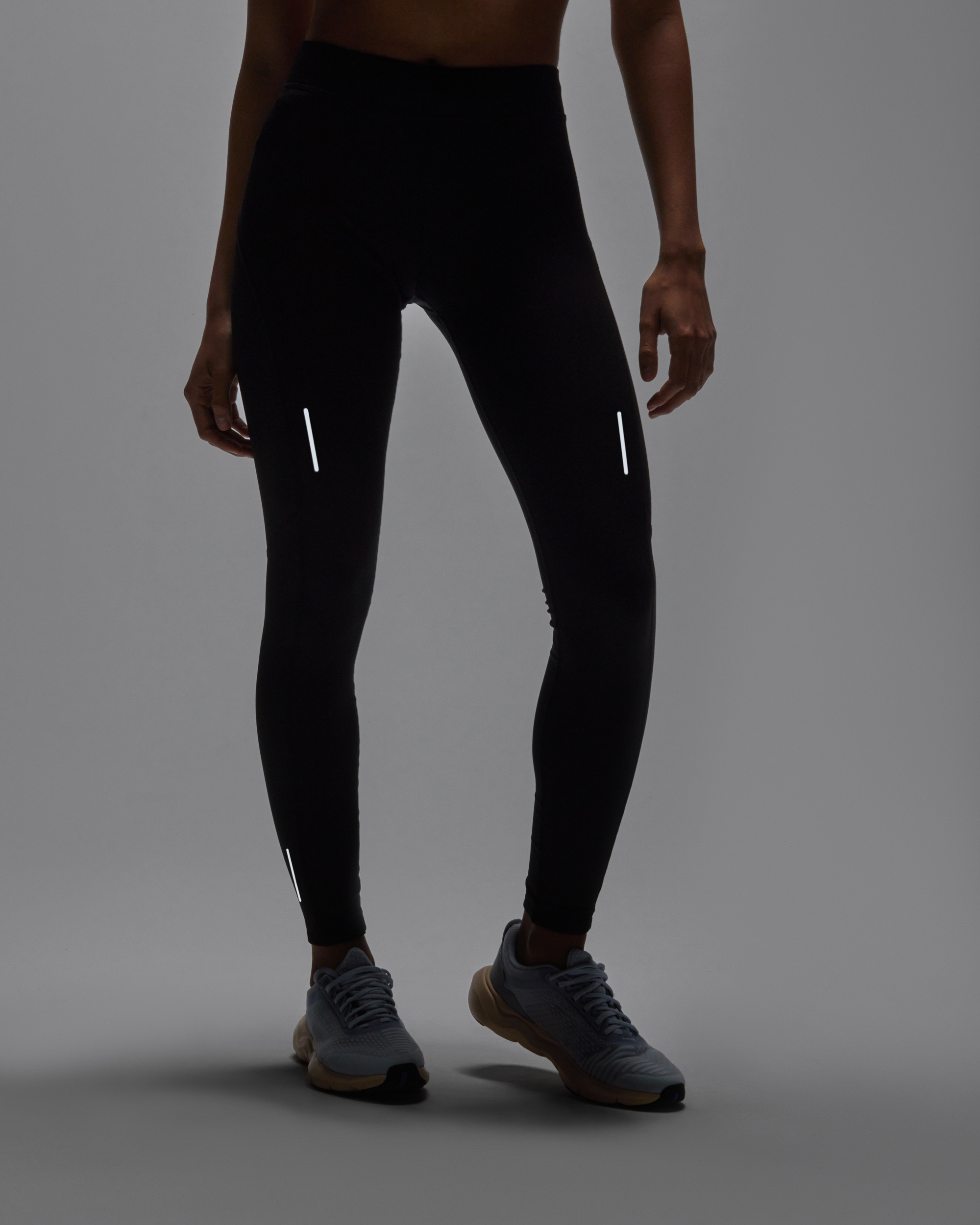 Malla larga deportiva transpirable para mujer con cinturilla elástica y cordón interior cruzado para facilitar ajuste. Detalles reflectantes. Bolsillo interior delantero. Tejido elástico y adaptable al cuerpo.