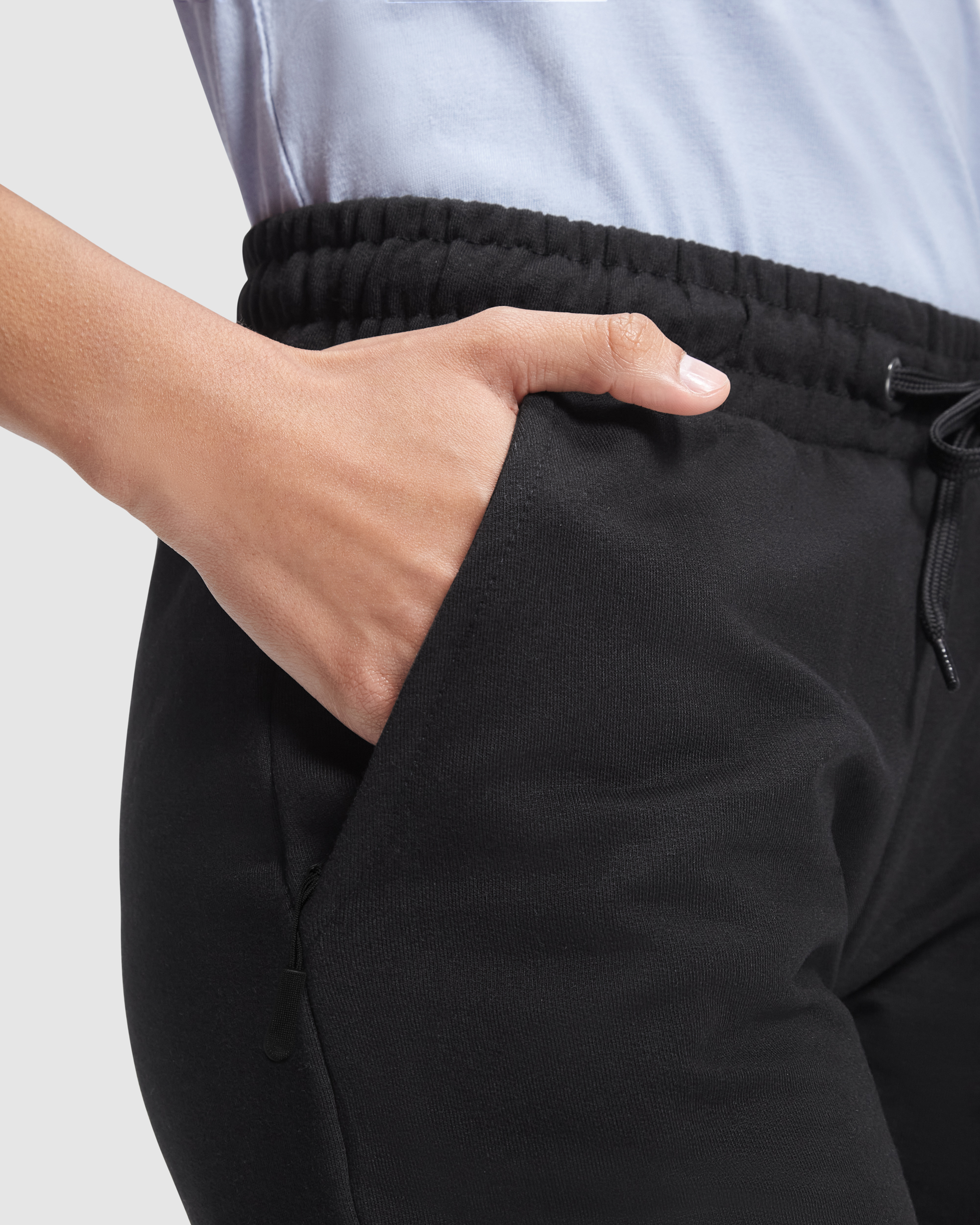 Pantalón largo de chándal, con cinturilla ancha ajustable mediante cordón. Bolsillos laterales con cremalleras. Bajos de puño ajustados.