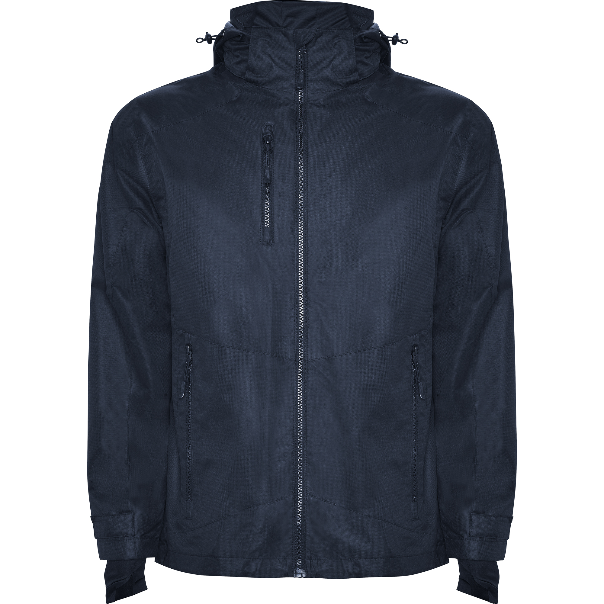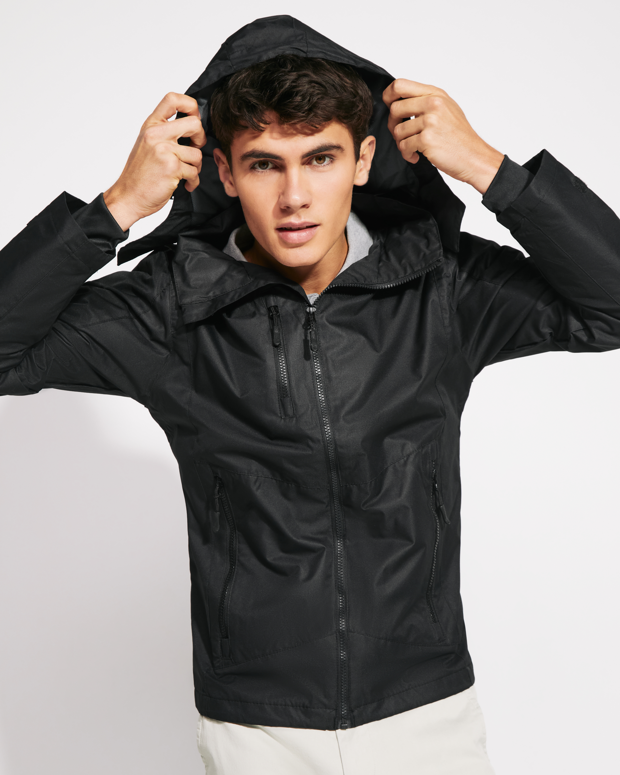 · Cuello alto y capucha extraíble con ajustadores.