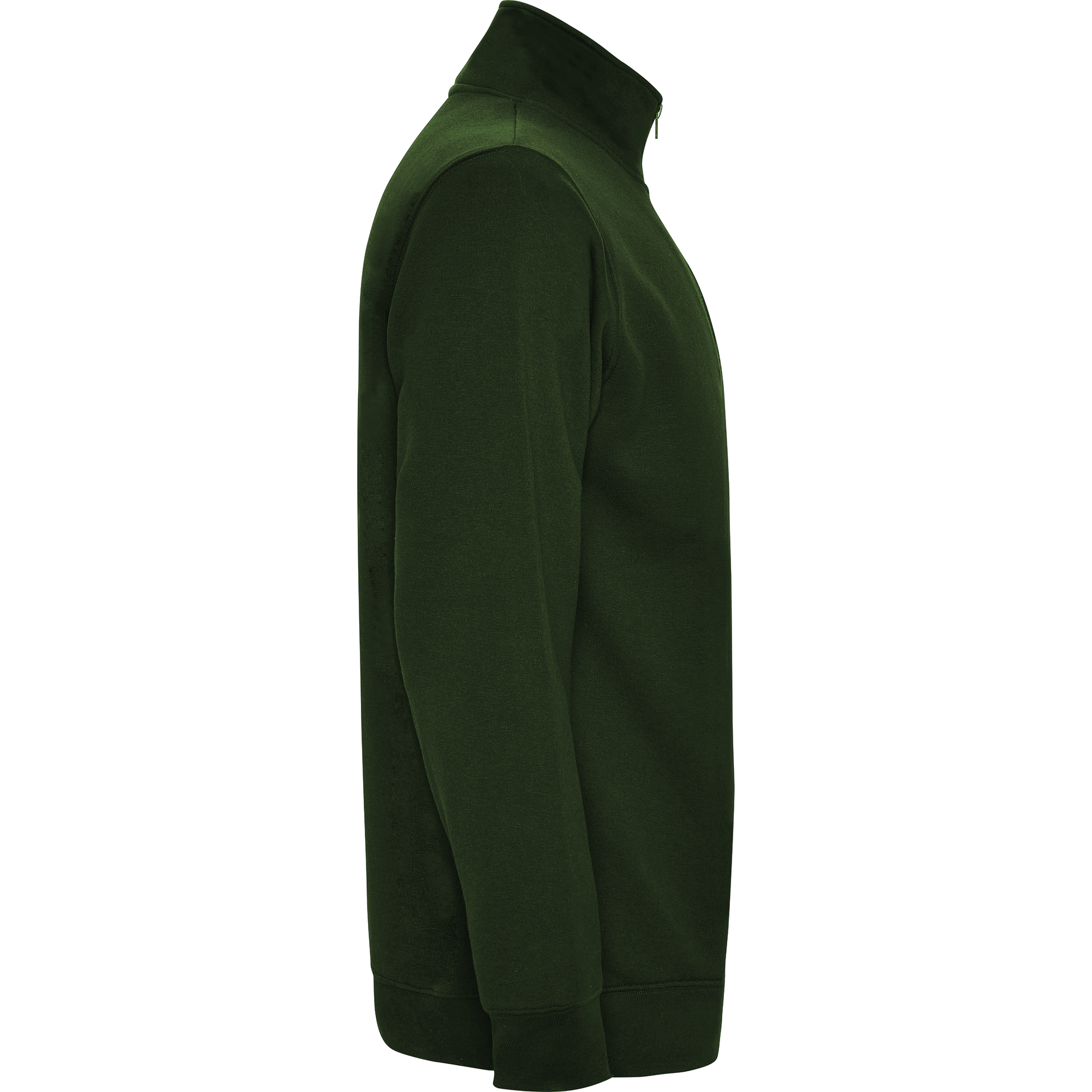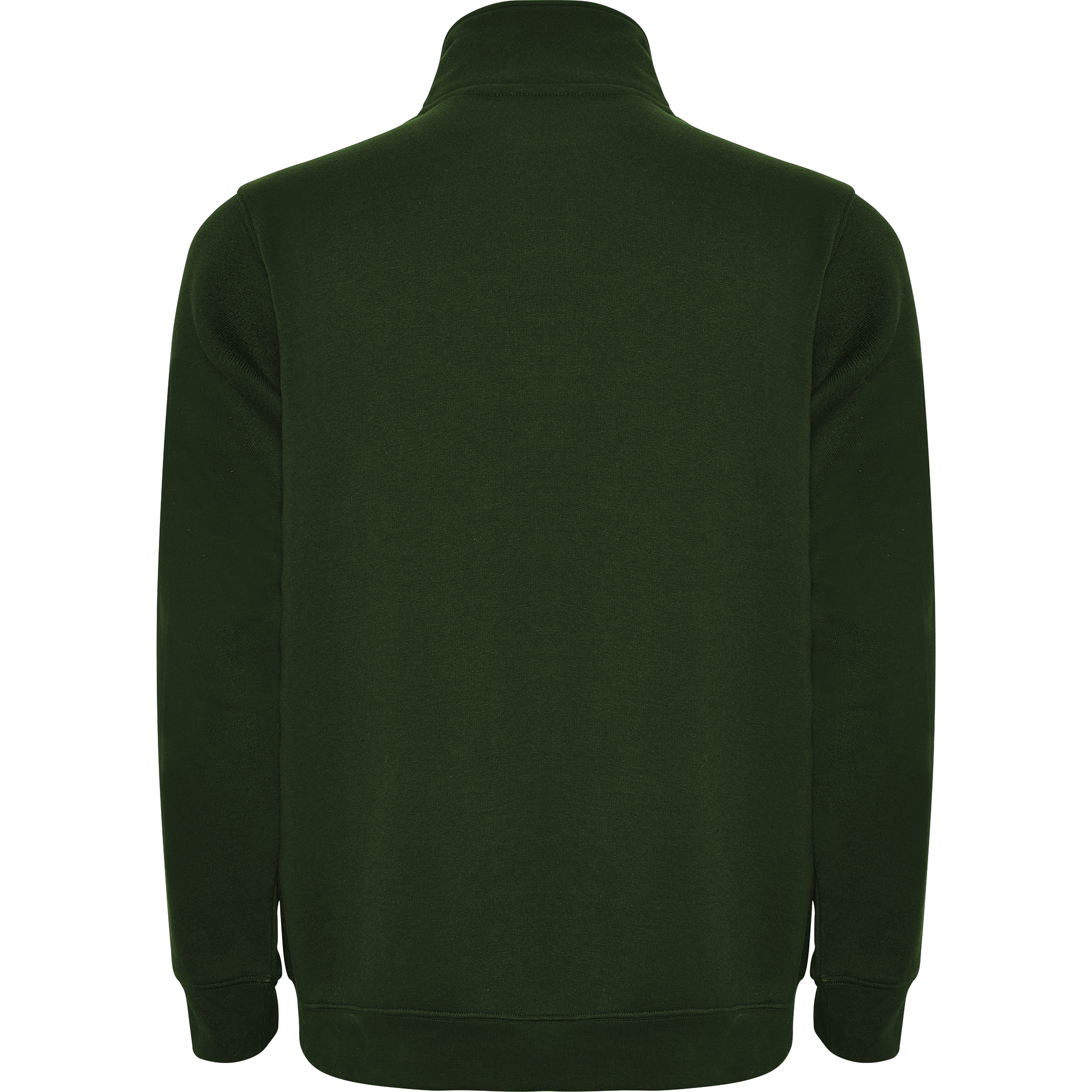 Sudadera con media cremallera a tono y cuello alto. Vista interior del cuello en el mismo tono. Cubrecosturas reforzado en el interior del cuello. Punto canalé 1×1 en puños y cintura.