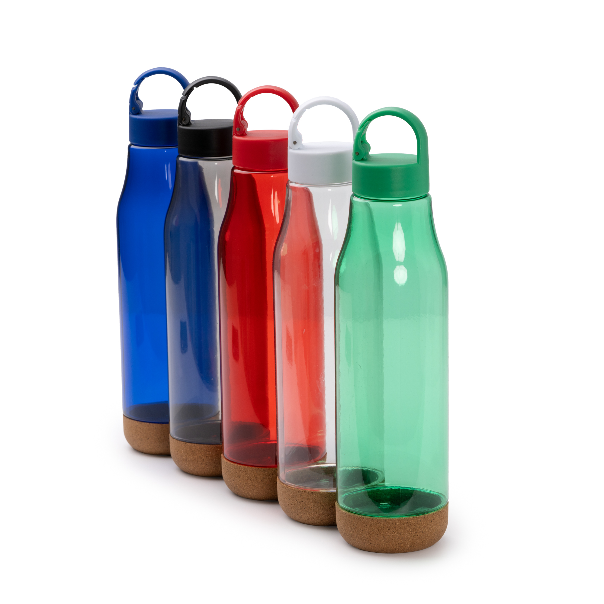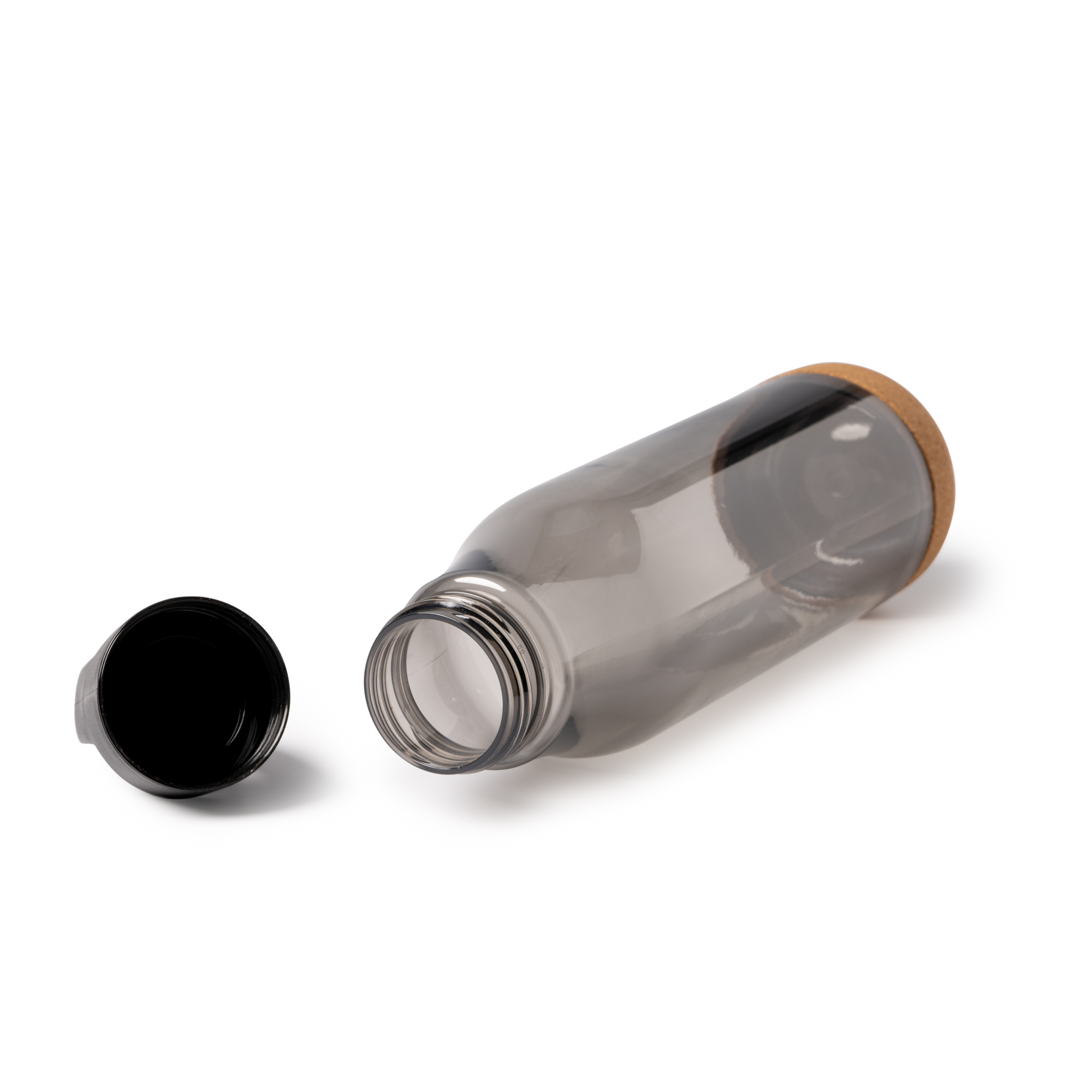 Botella con cuerpo de RPET y base de corcho. Asa de transporte con función mosquetón en la tapa, para facilitar su transporte. Capacidad 720 ml. Su base de corcho evita el deslizamiento del bidón en superficies. Una opción ligera y práctica para el transporte de bebidas y líquidos.