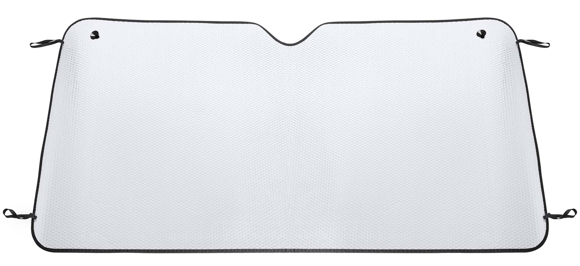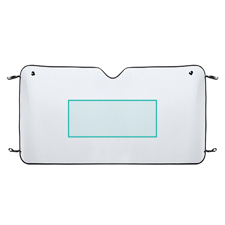 Parasol de grandes dimensiones ideal para camiones y furgonetas. Burbuja a doble cara, realizado en aluminio acabado metalizado y ribete en negro. Incluye argollas metálicas con ventosas y cintas elásticas para plegado.