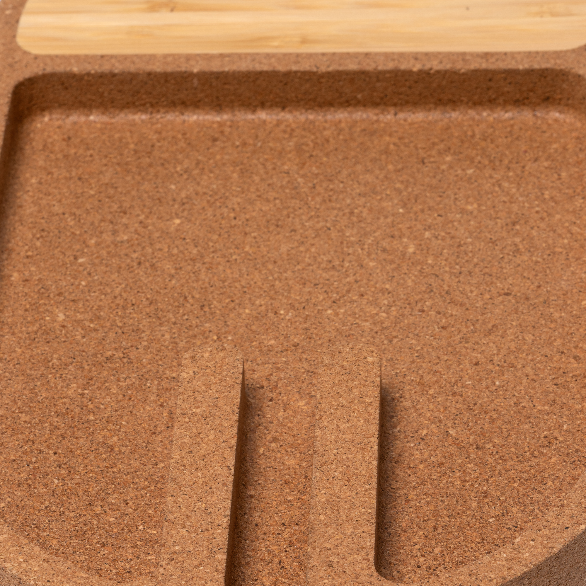El cuerpo combinado de corcho y bambú no solo le otorga un aspecto natural y elegante, sino que también muestra tu compromiso con el medio ambiente al utilizar materiales sostenibles. La presentación del cargador se realiza en una caja diseño eco, en consonancia con su enfoque en la sostenibilidad.
