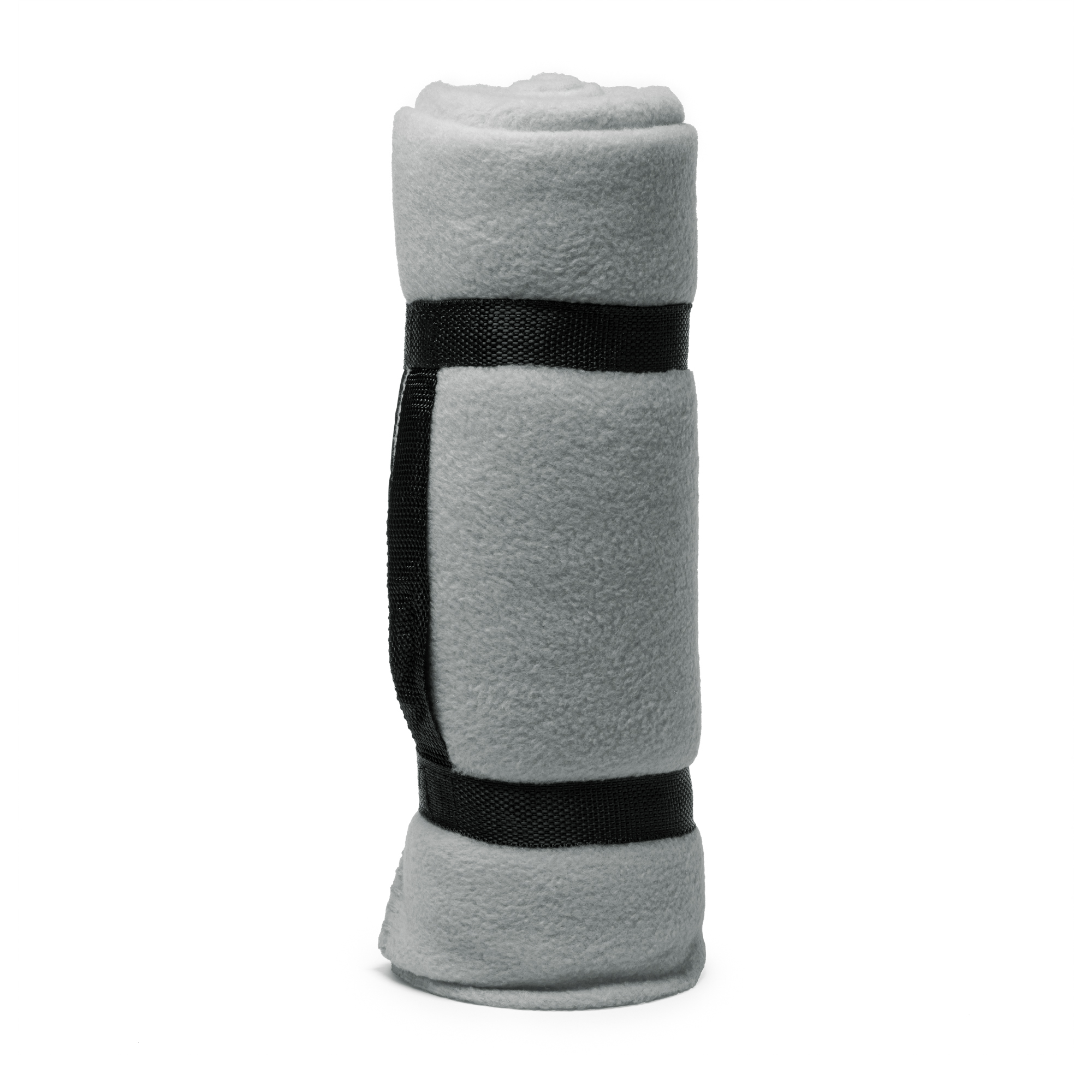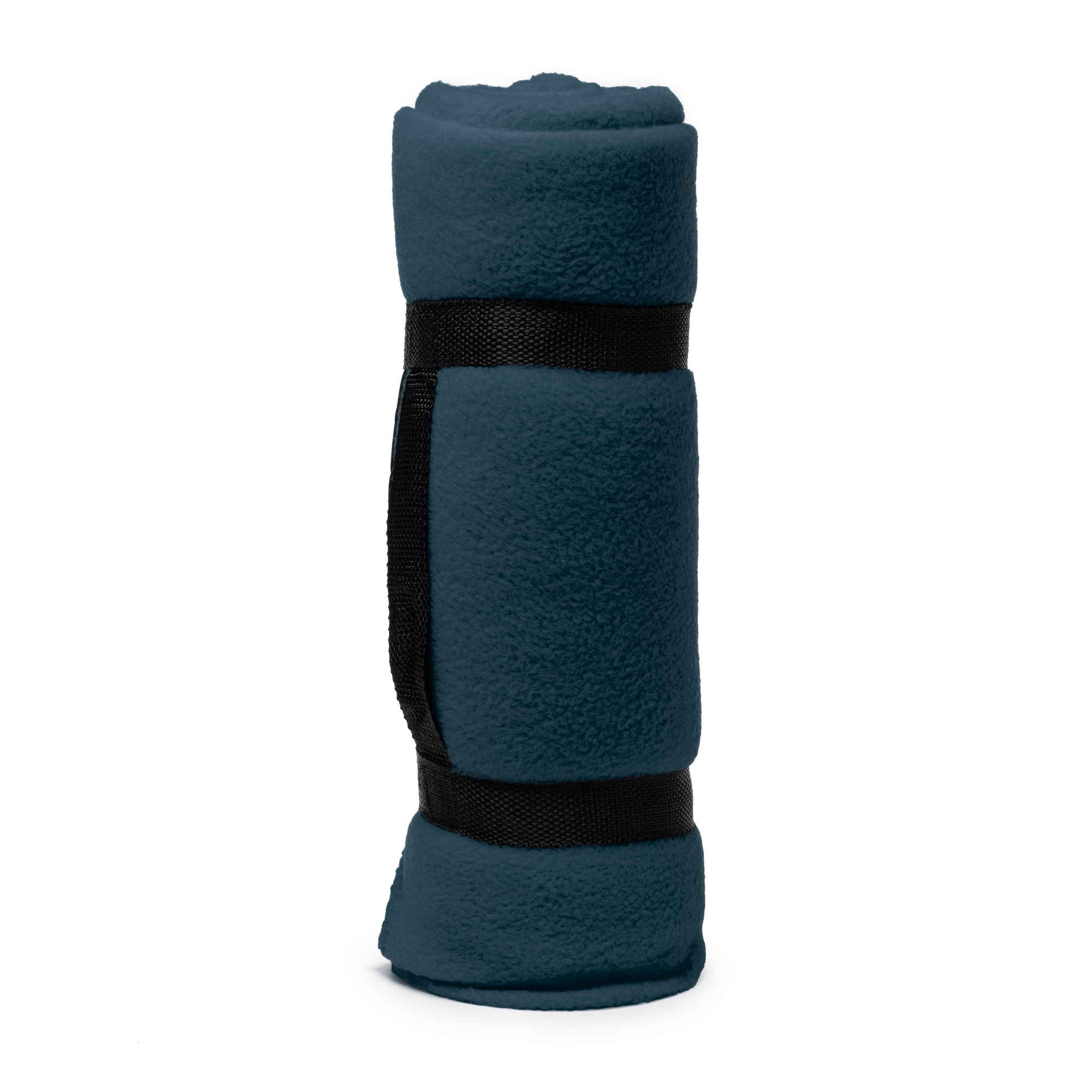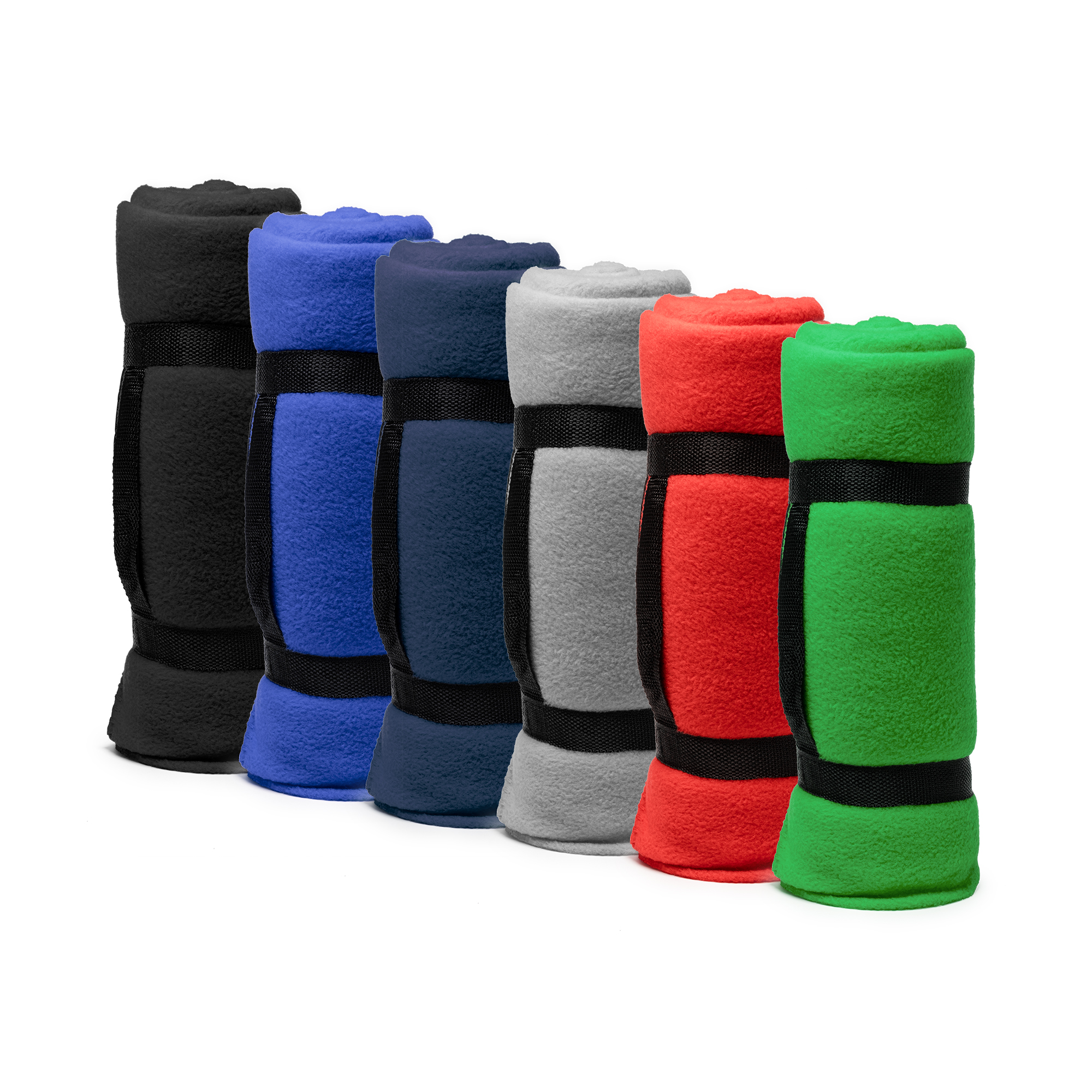 Manta de forro polar con tratamiento anti-pilling. Incluye asa de transporte con cierre de velcro. 100% poliéster de 200 g/m².