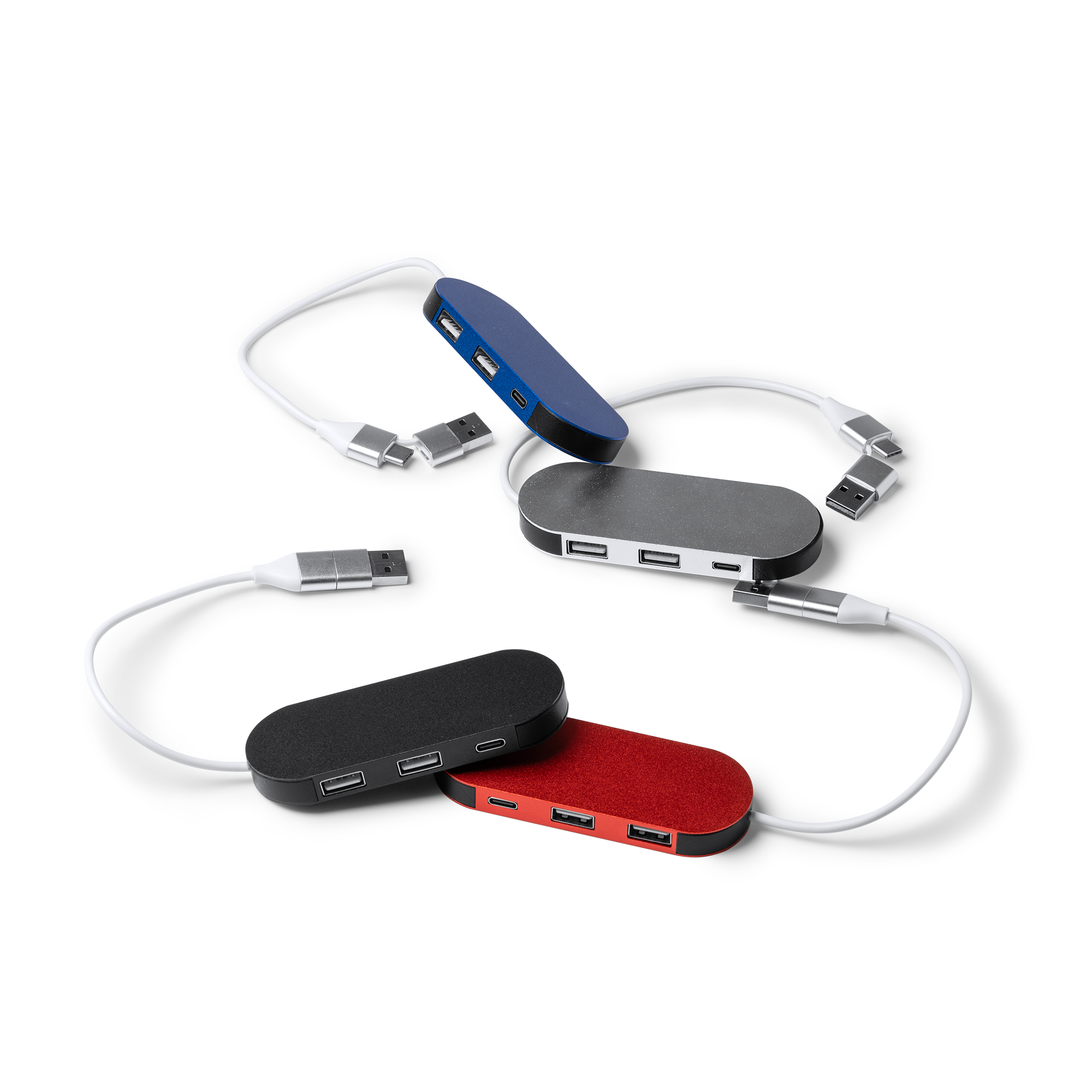 Puerto USB con un cuerpo fabricado en aluminio reciclado de alta calidad. Este versátil puerto cuenta con una entrada USB y Tipo C, así como una salida de 2 puertos USB y Tipo C, lo que te brinda múltiples opciones para cargar tus dispositivos de manera eficiente y conveniente.