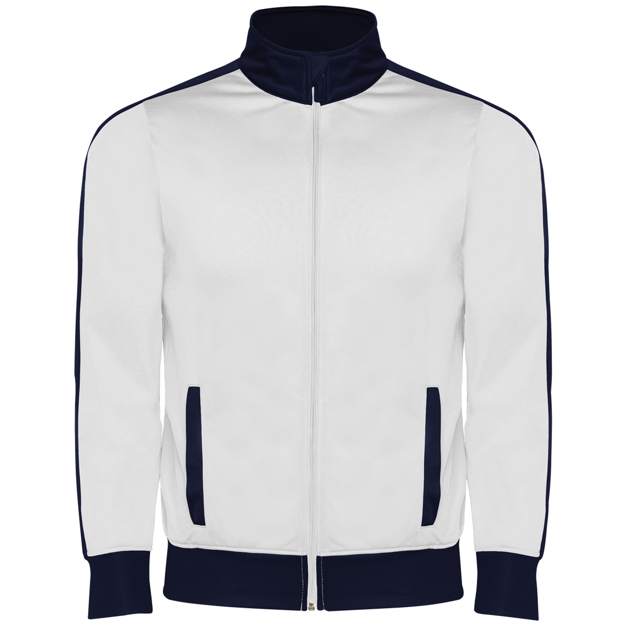 Chándal combinado de chaqueta y pantalón. Cuello alto con protector de cremallera. Bolsillos frontales con vivo en contraste. Puños y cintura en contraste en canalé 1×1. Cremallera central con cubrecosturas interior. Pantalón con cinturilla elástica y cordón ajustable con pespunte de seguridad y dos bolsillos laterales con vivo ancho. Tejido interior aterciopelado muy confortable. Cremallera en el bajo del pantalón.