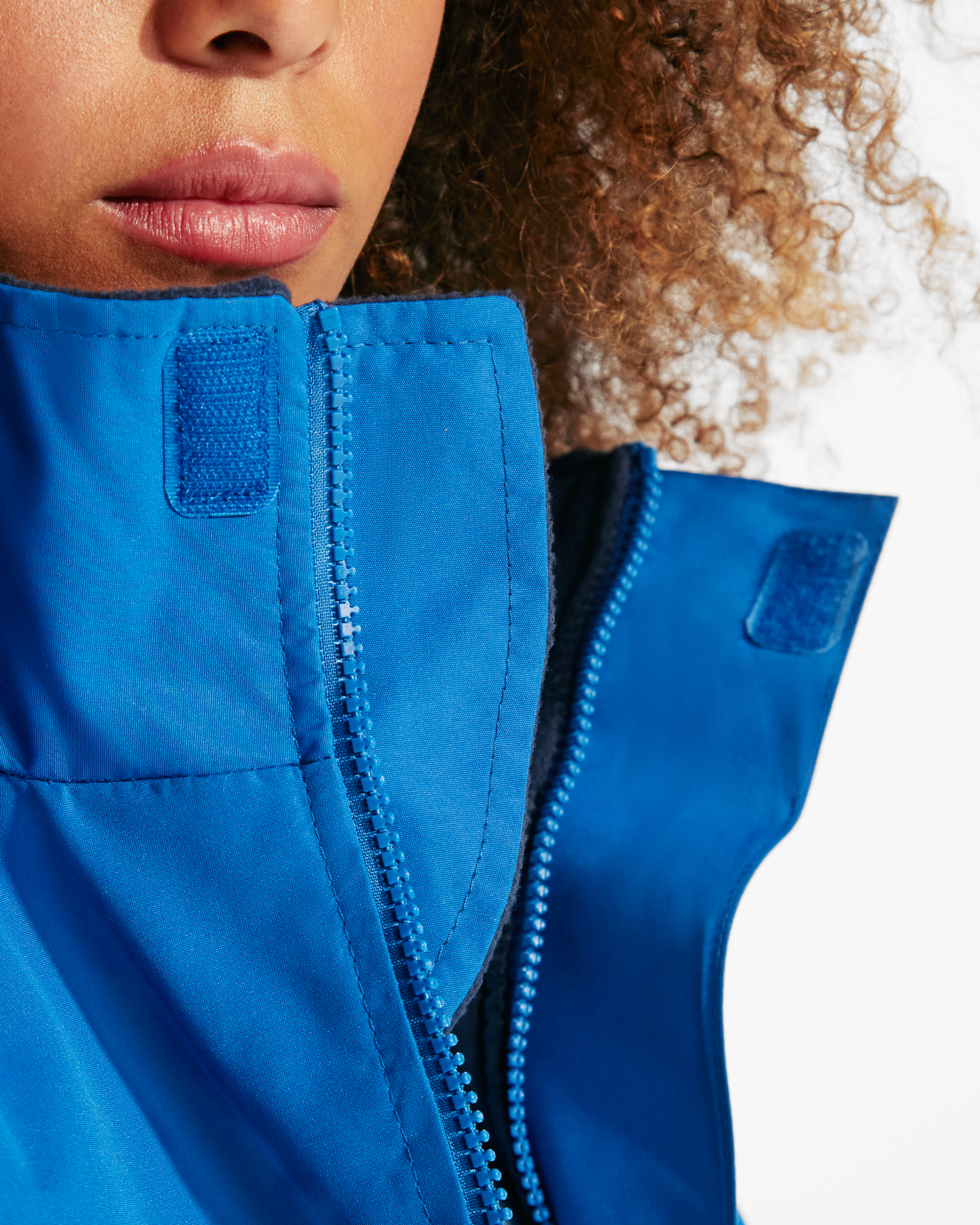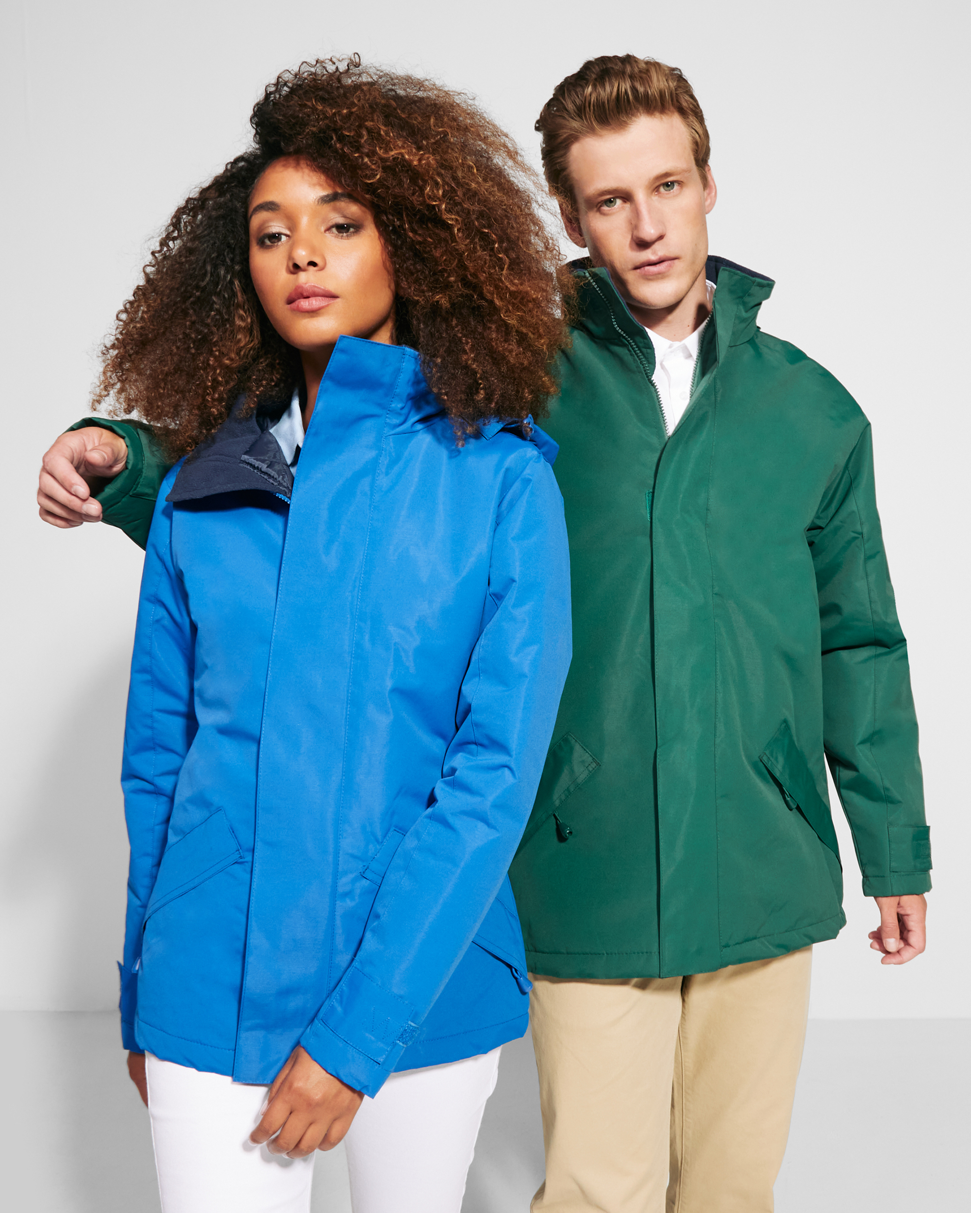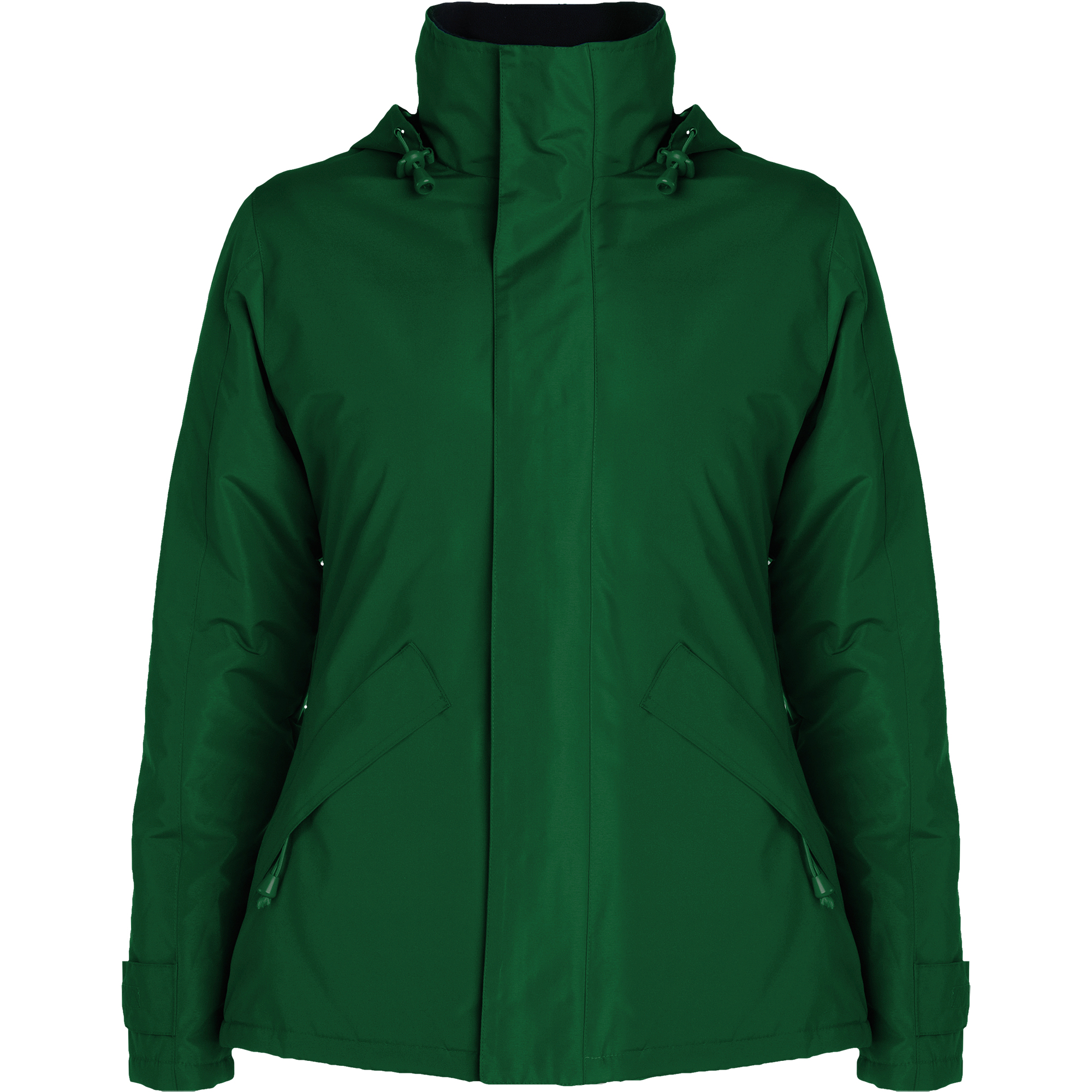 ·Cuello alto con capucha plegada y extraíble en cuello con cierre velcro.