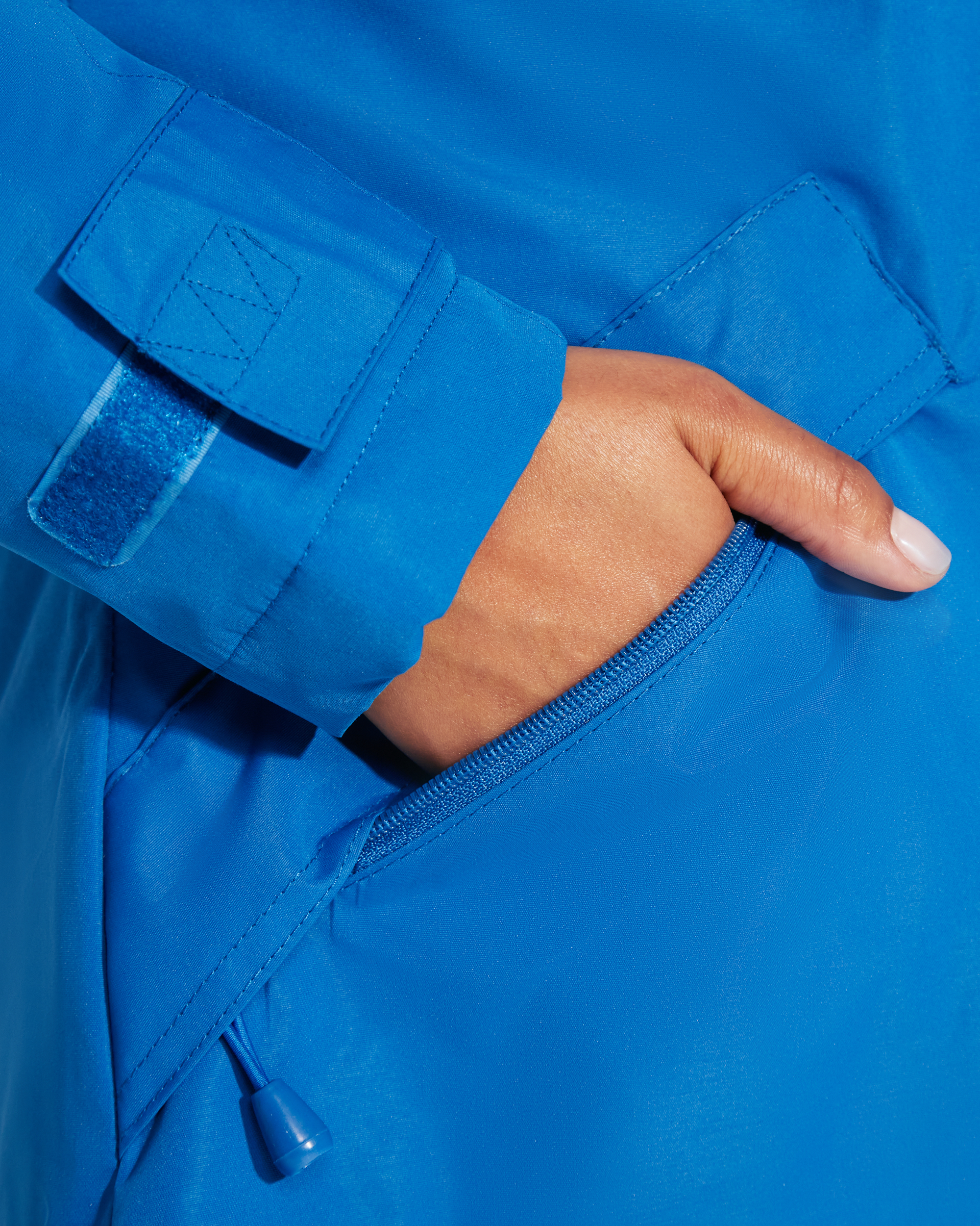 ·Puños ajustables con trabillas y velcro.