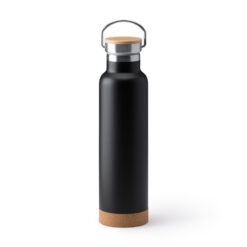 Botella con cuerpo de RPET. Capacidad 800 ml. Cuenta con tapón de rosca, asa de transporte y mosquetón incorporado para mejorar y facilitar su transporte. Una opción respetuosa con el medioambiente al estar fabricado en materiales reciclados.