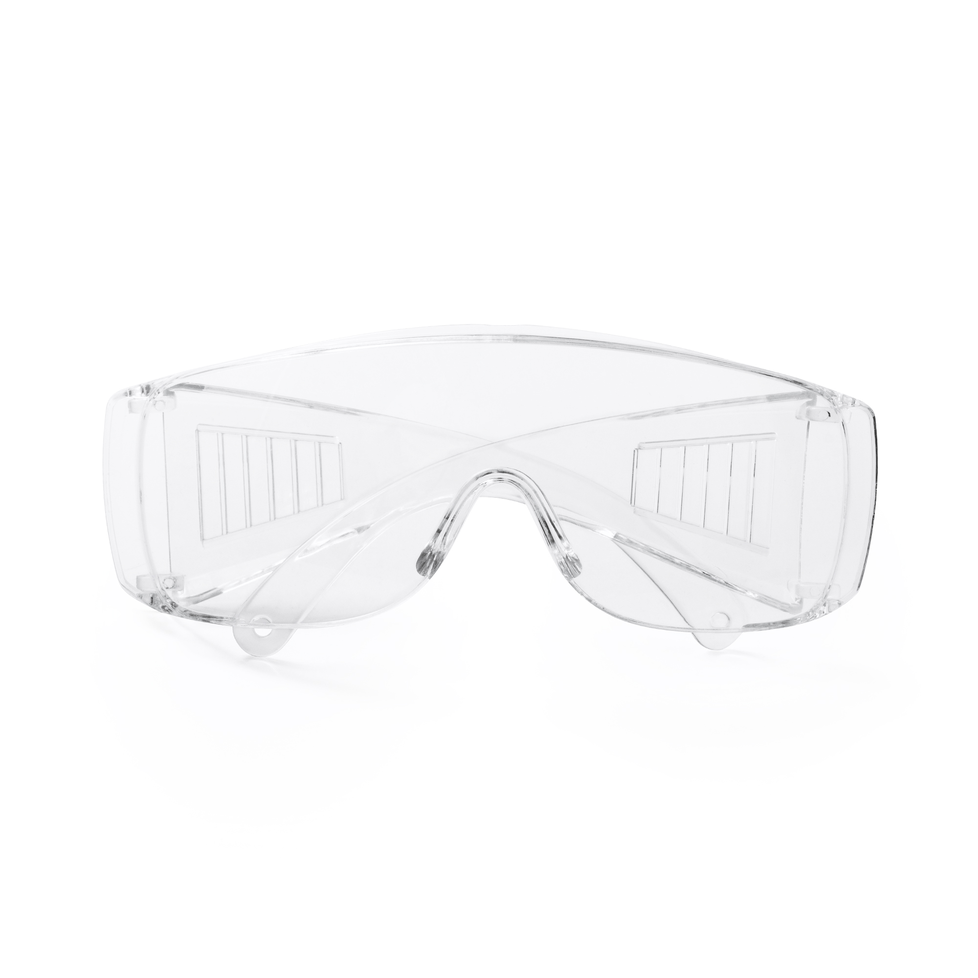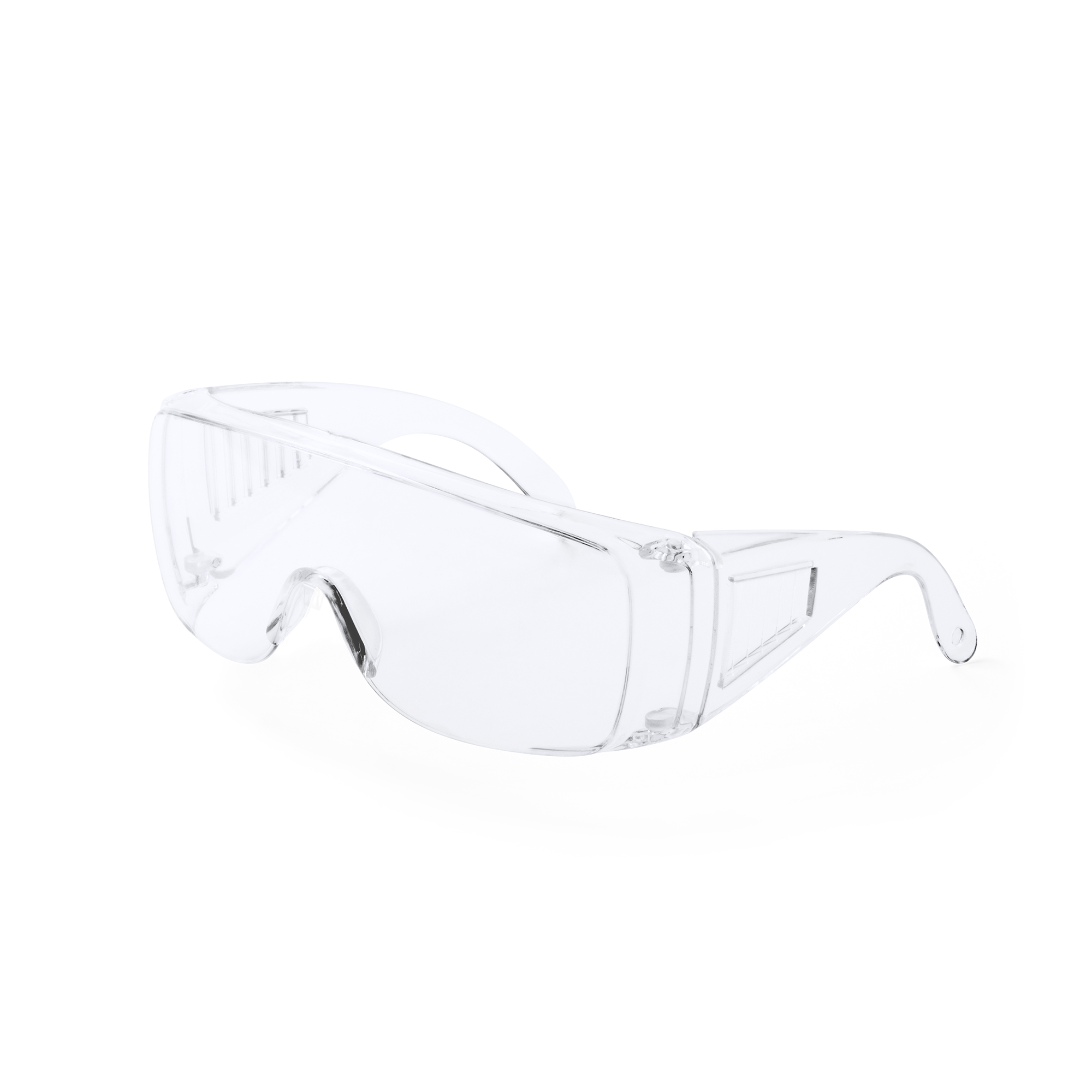Gafas transparentes anti-vaho. Sus anchas patas cuentan con aberturas de ventilación lateral y un orificio en su extremo para la sujeción de lanyards o cordones. Realizadas en ligero policarbonato, son perfectas para proteger los ojos del usuario ante agentes externos. Uso compatible sobre gafas graduadas.