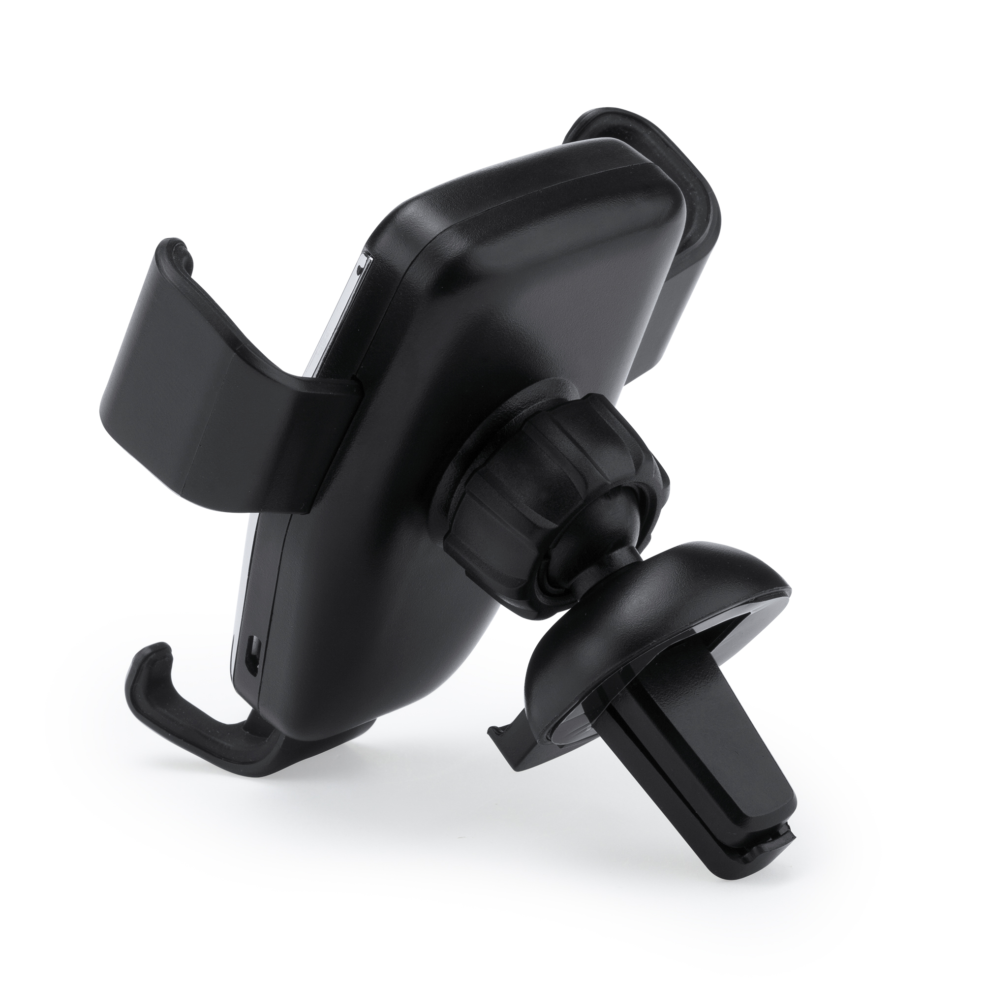 Soporte para smartphone con cargador inalámbrico para coche, fácil de utilizar y de adaptar en tu vehículo. Conecte el dispositivo, coloque el móvil sobre él y deje que se cargue. Compatible con modelos de carga inalámbrica. Cable y dos accesorios incluidos. Carga rápida 10W. DC5V/1.0A.