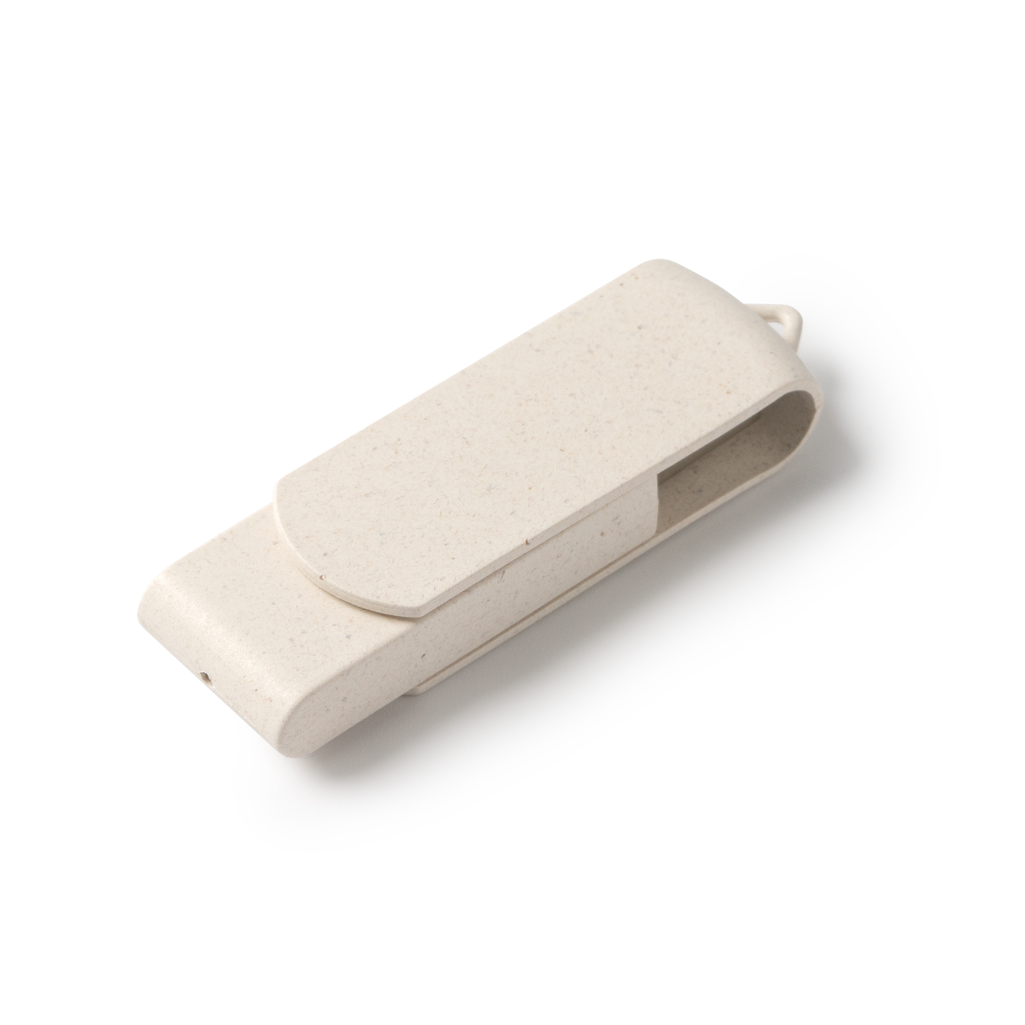 Memoria USB con cuerpo y clip giratorio de fibra de trigo. Capacidad de 16 GB.