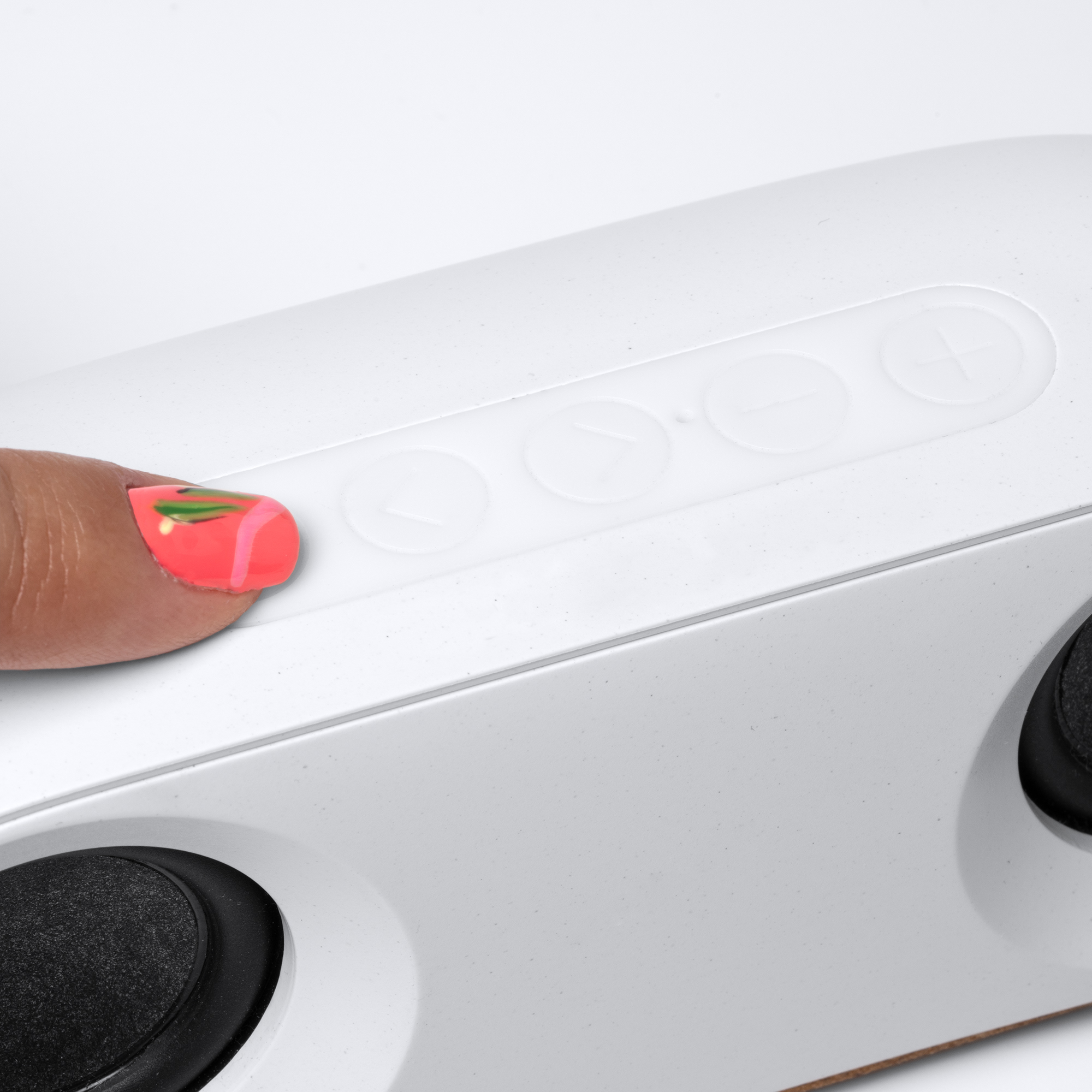 El altavoz viene presentado en una caja de diseño eco, lo que refuerza su enfoque sostenible y lo hace una opción ideal para aquellos que valoran la ecología.