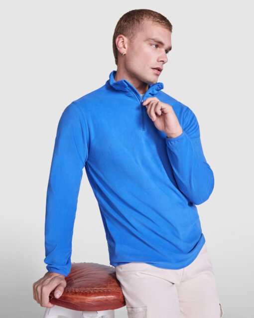 Forro polar para hombre con cremallera entera, bolsillos laterales, puños elásticos y cordón de ajuste con topes, 100% poliéster reciclado. Acabado micropolar antipilin para evitar la aparición de «bolitas». Ideal para trabajos en exteriores, actividades de montaña o al aire libre porque proporciona una buena protección contra el frío. Disponible en 16 colores desde la talla XS hasta la 3XL.