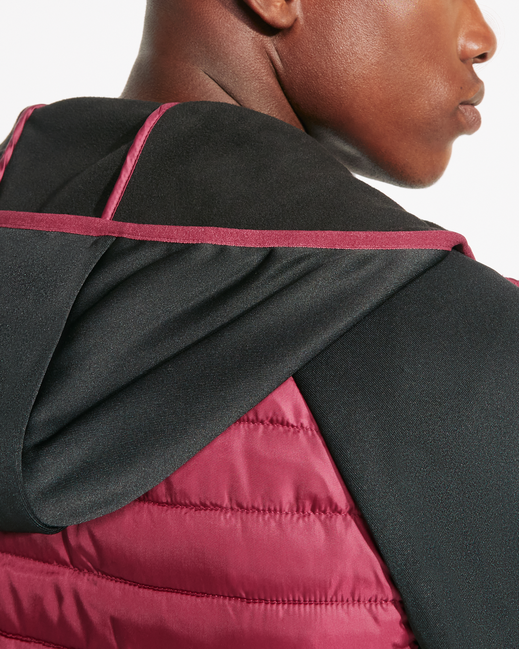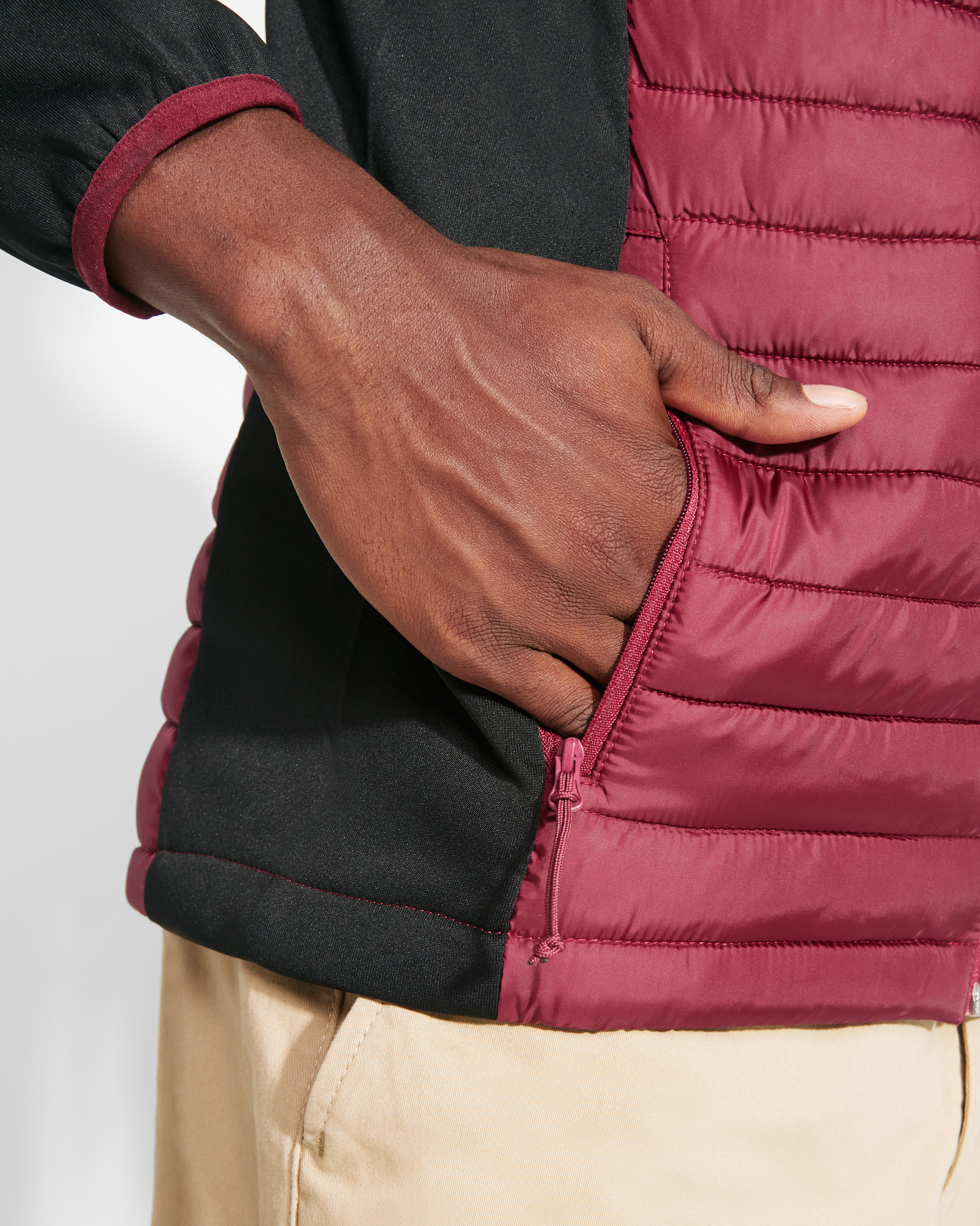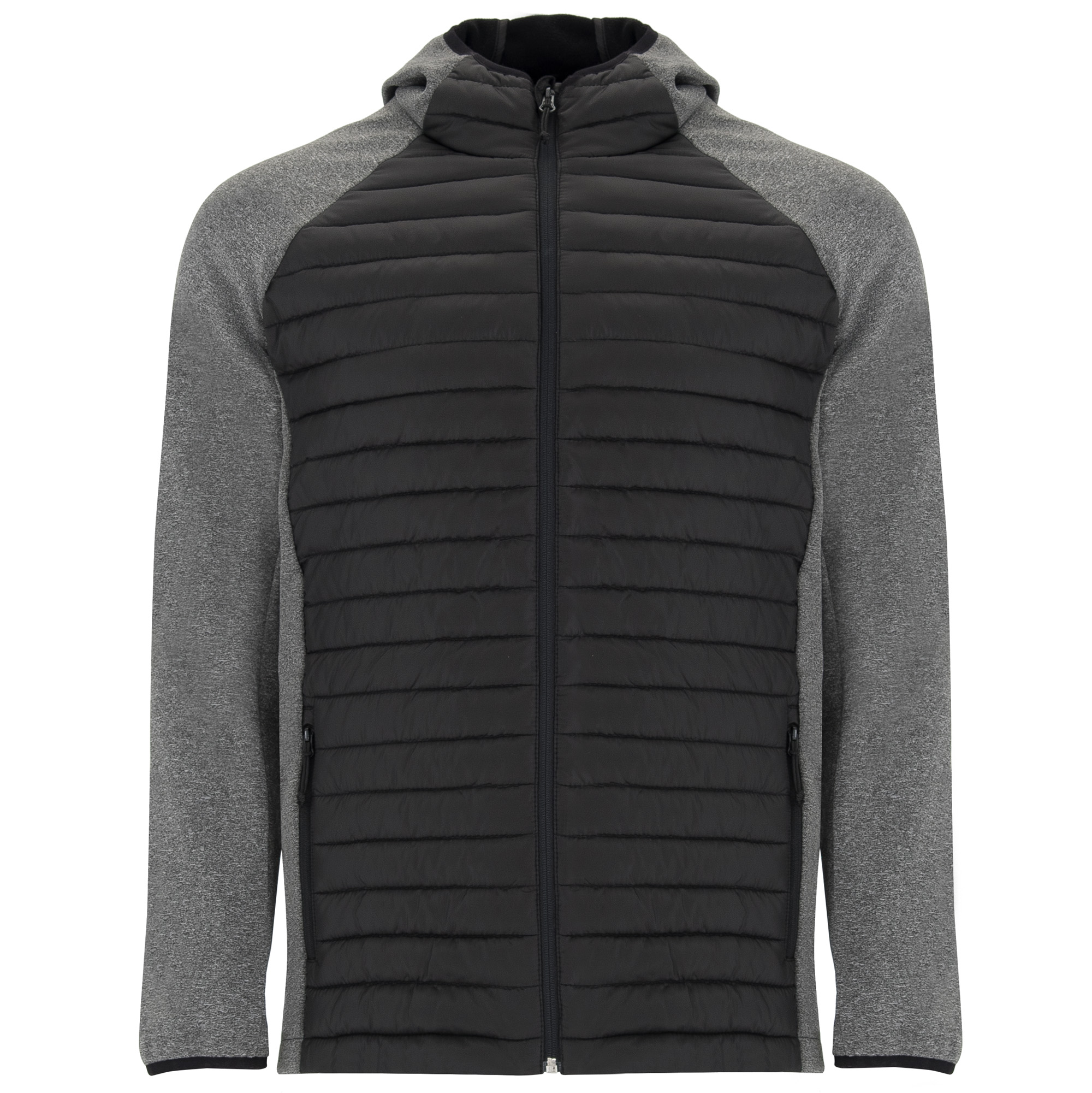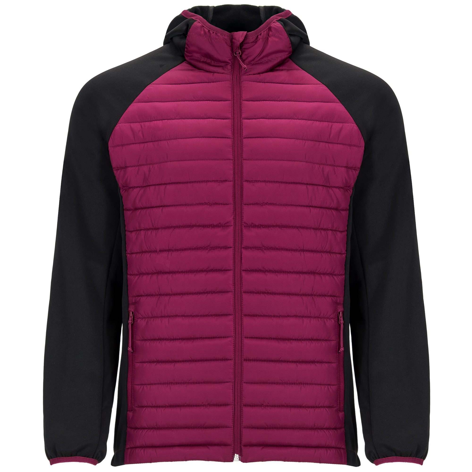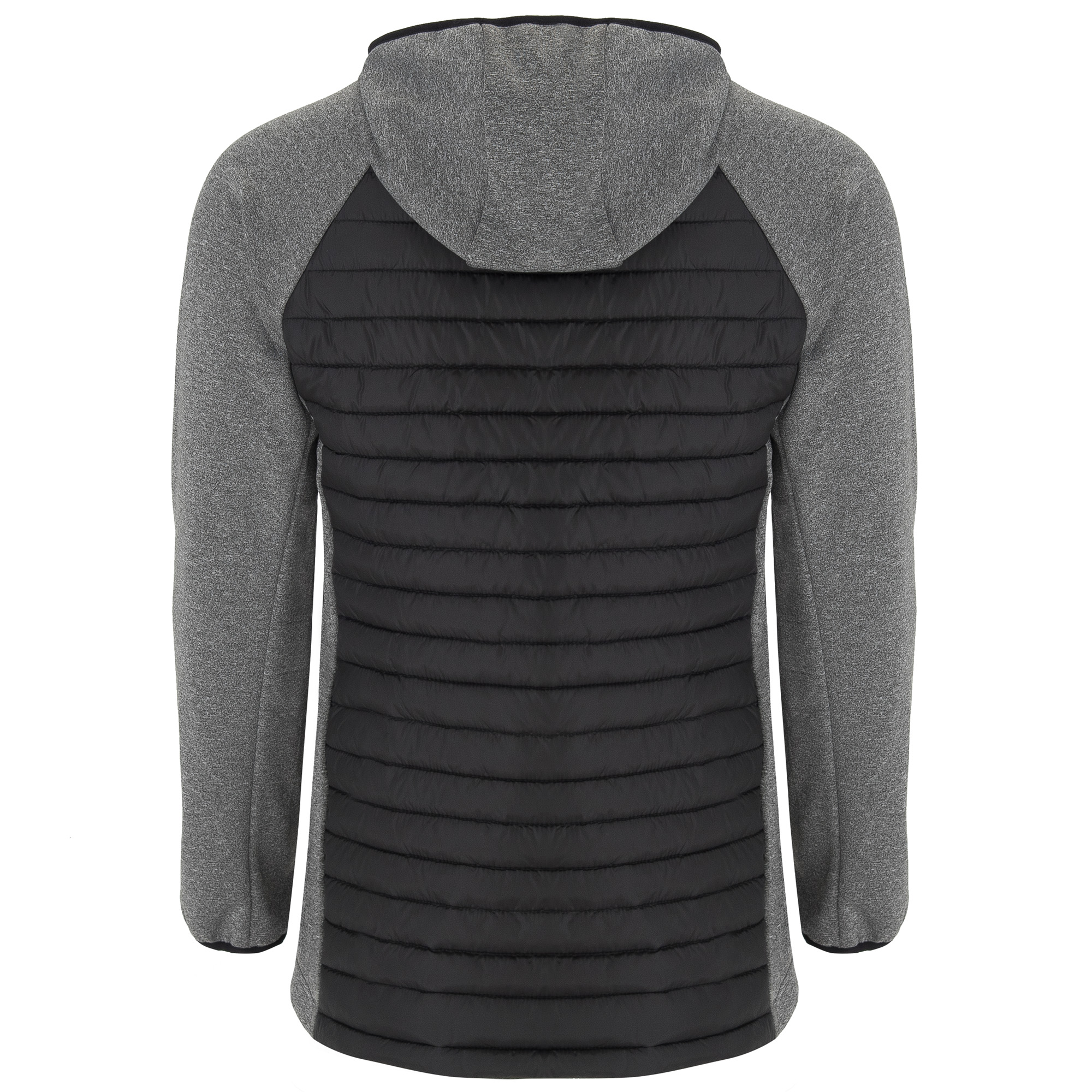·Capucha fija ajustada. Manga estilo ranglán. Tejido softshell en mangas, paneles laterales y capucha, y tejido acolchado tacto pluma en frontal y espalda. ·Cremallera invertida a tono con protector de barbilla y tirador.