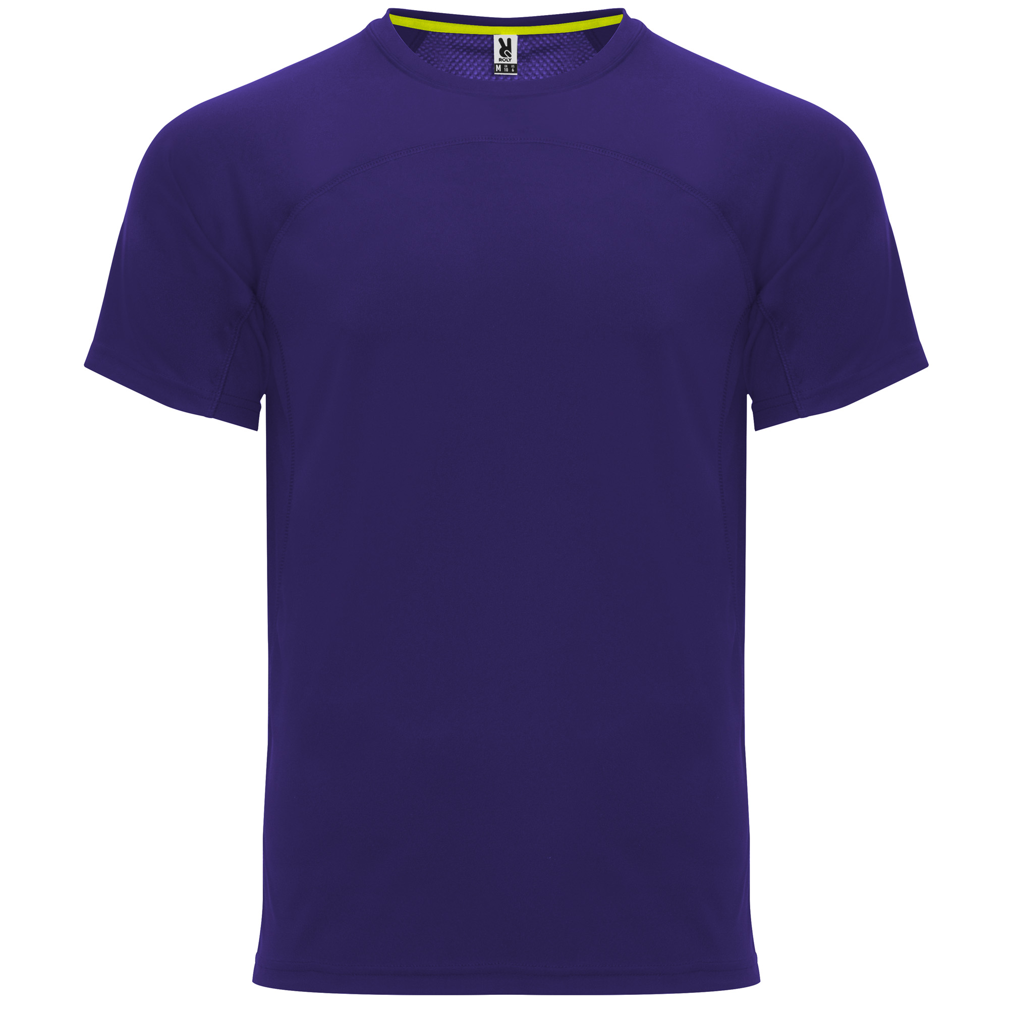 Camiseta técnica de manga ranglán unisex. Combinación de dos tejidos, frontal interlock y espalda rejilla 3D, ofrece un rendimiento versátil y suave . Cubre costuras de refuerzo a contraste en color amarillo flúor. Bajo espalda ligeramente más largo que el delantero.