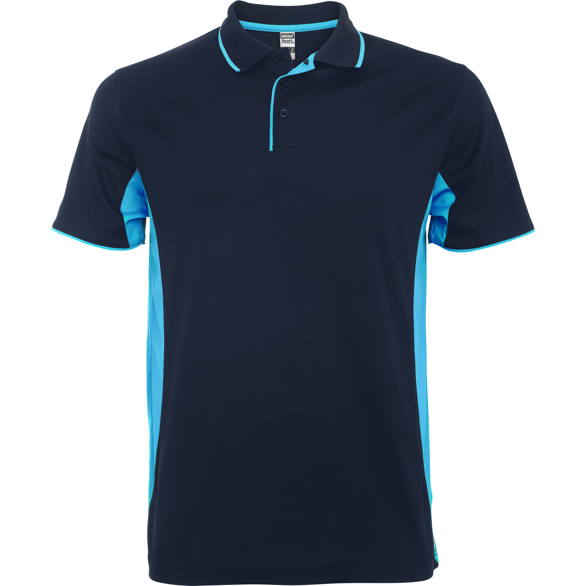 Polo técnico en manga corta, especial para deporte. Combinado a dos colores. Cuello con abotonadura, cubrecosturas y tapeta en contraste de color. Tejido transpirable fácil lavado y secado.
