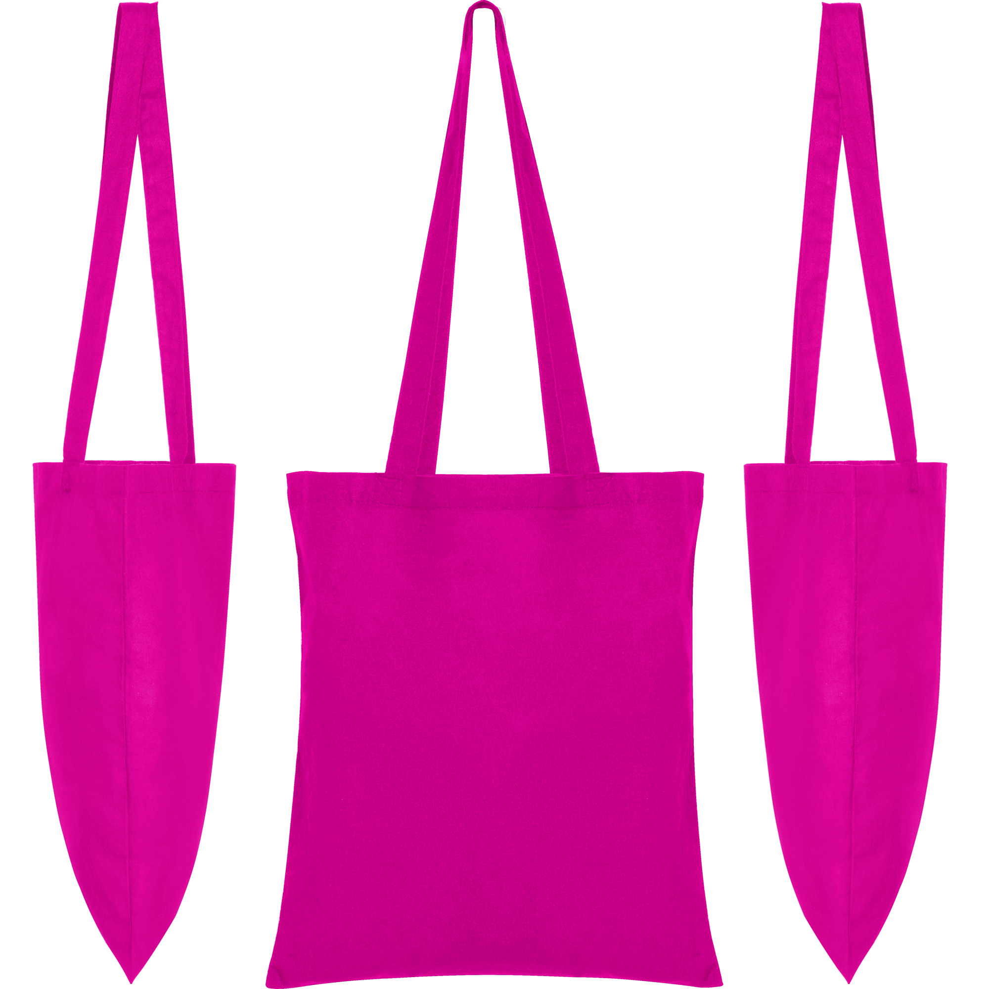 Bolsa fabricada en tejido de algodón en color, con asa larga de cinta en el mismo color.