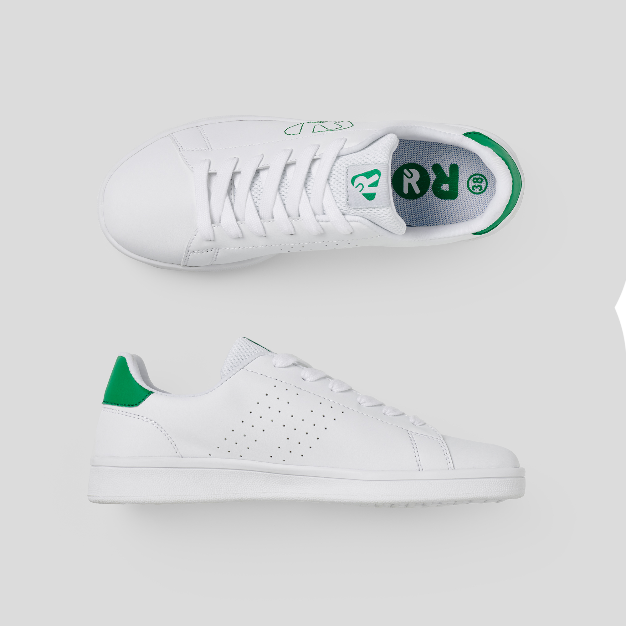Punta redondeada, suela de goma y lateral interior microperforado.
