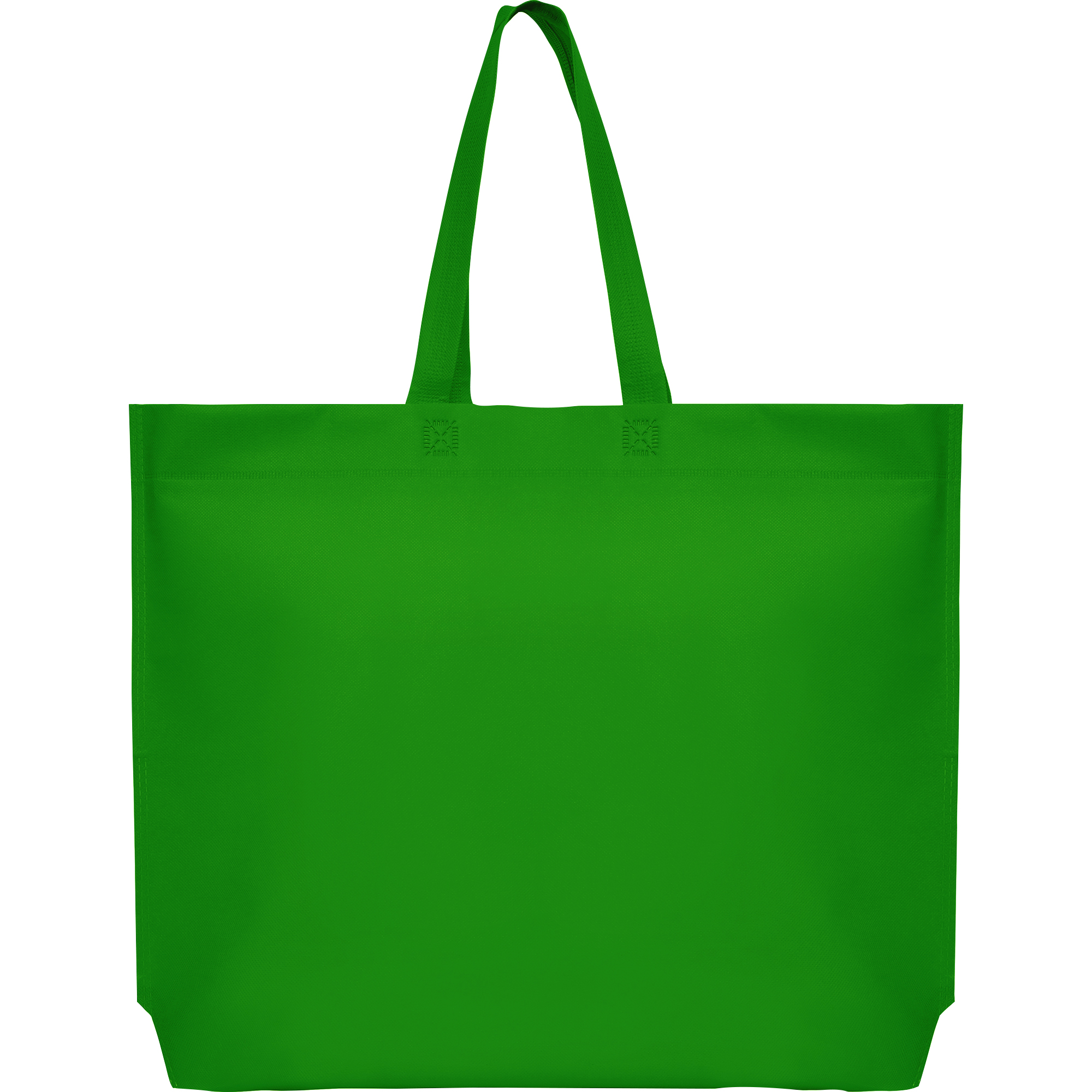 Bolsa termosellada con fuelle hexagonal en la base, fabricada en tejido non-woven (no tejido), con asa larga de cinta en el mismo color.