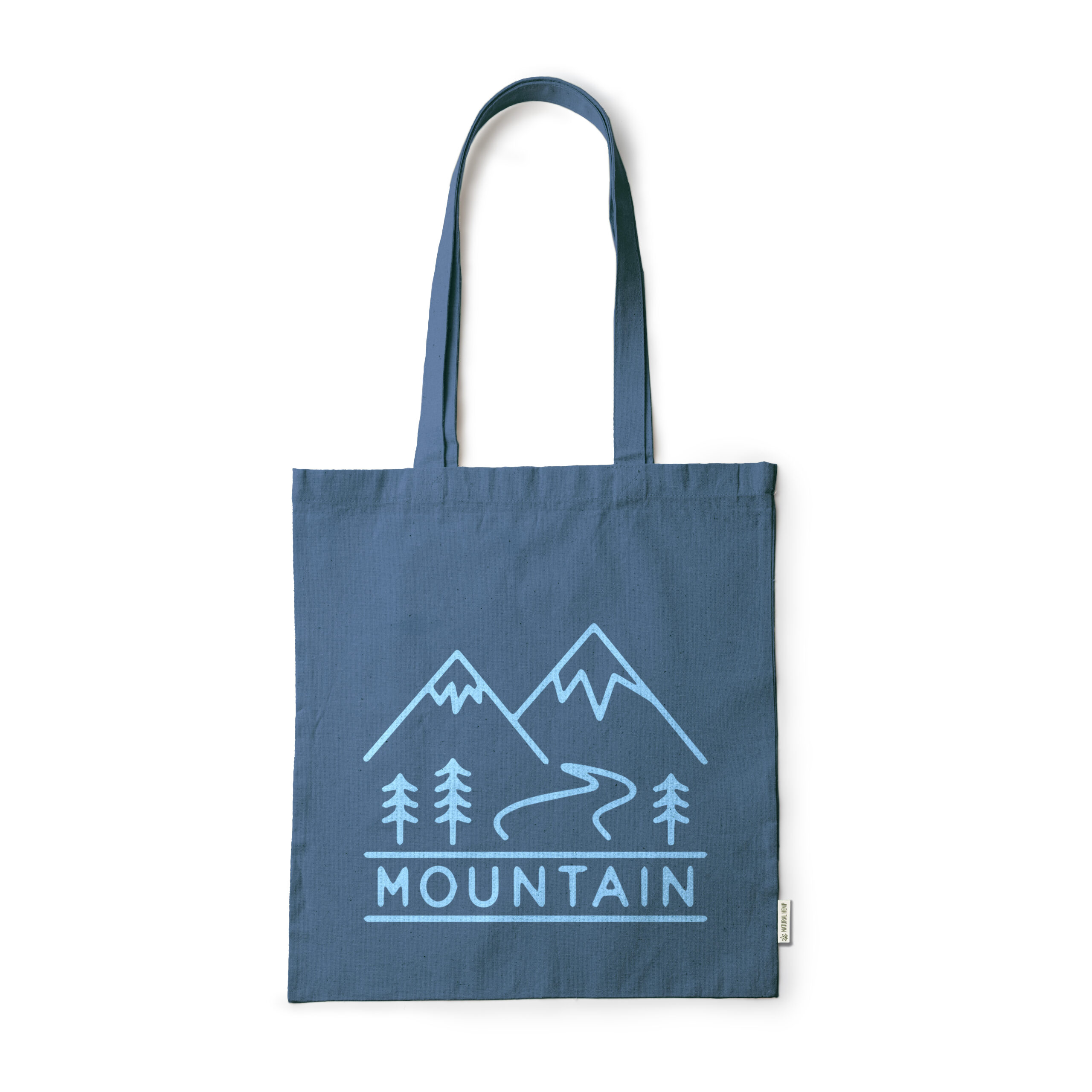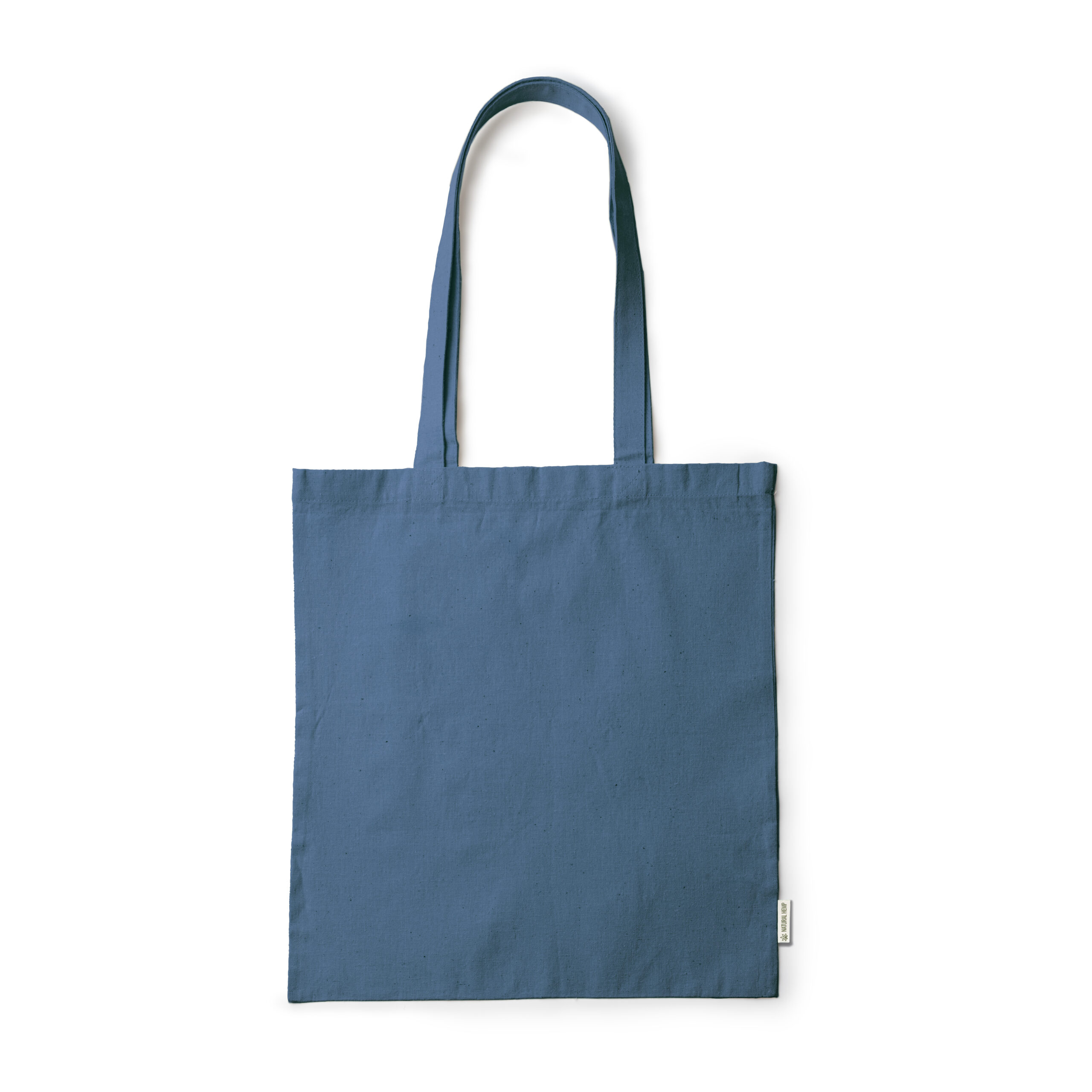 Bolsa realizada en tela de cáñamo 200 g/m². Asas largas reforzadas de 70 cm idónea para realizar la compra de manera cómoda.