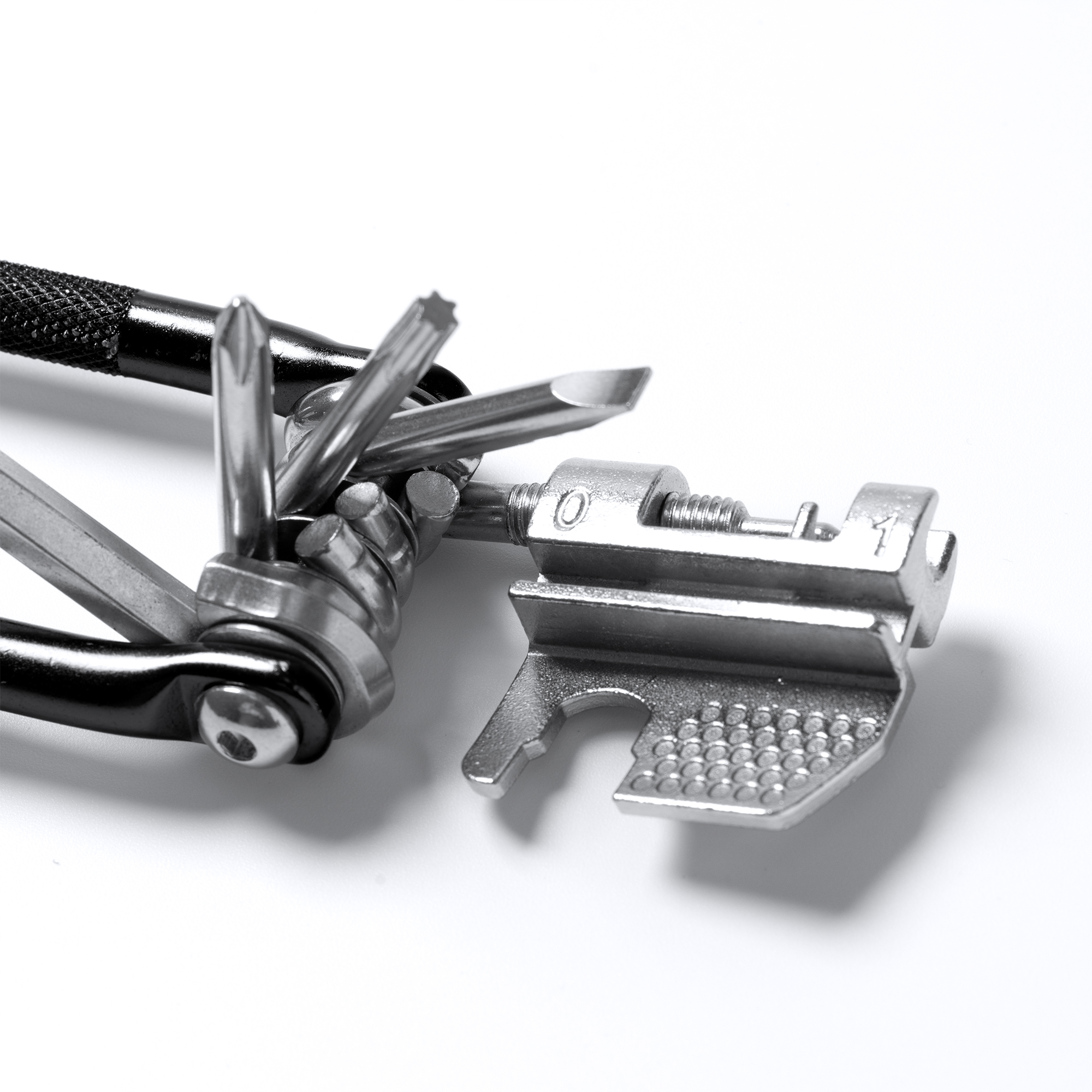 Multiherramientas de acero inoxidable con diseño compacto. 11 funciones desatornilladores y desmonta cadenas. Práctico multiherramientas que te solucionarán algún problema.