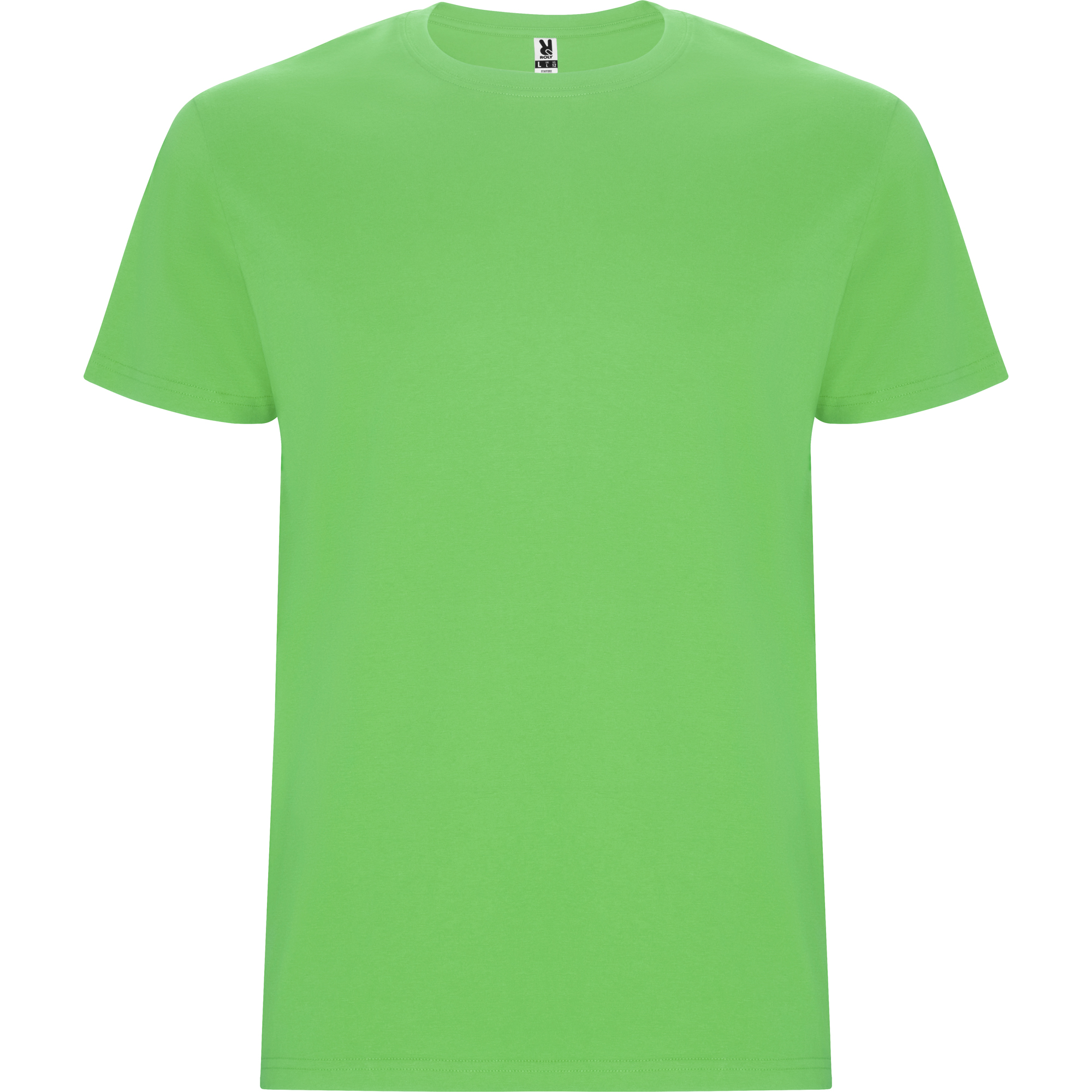 Camiseta tubular de manga corta. Cuello redondo con elastano. Costuras laterales en tallas de niño.