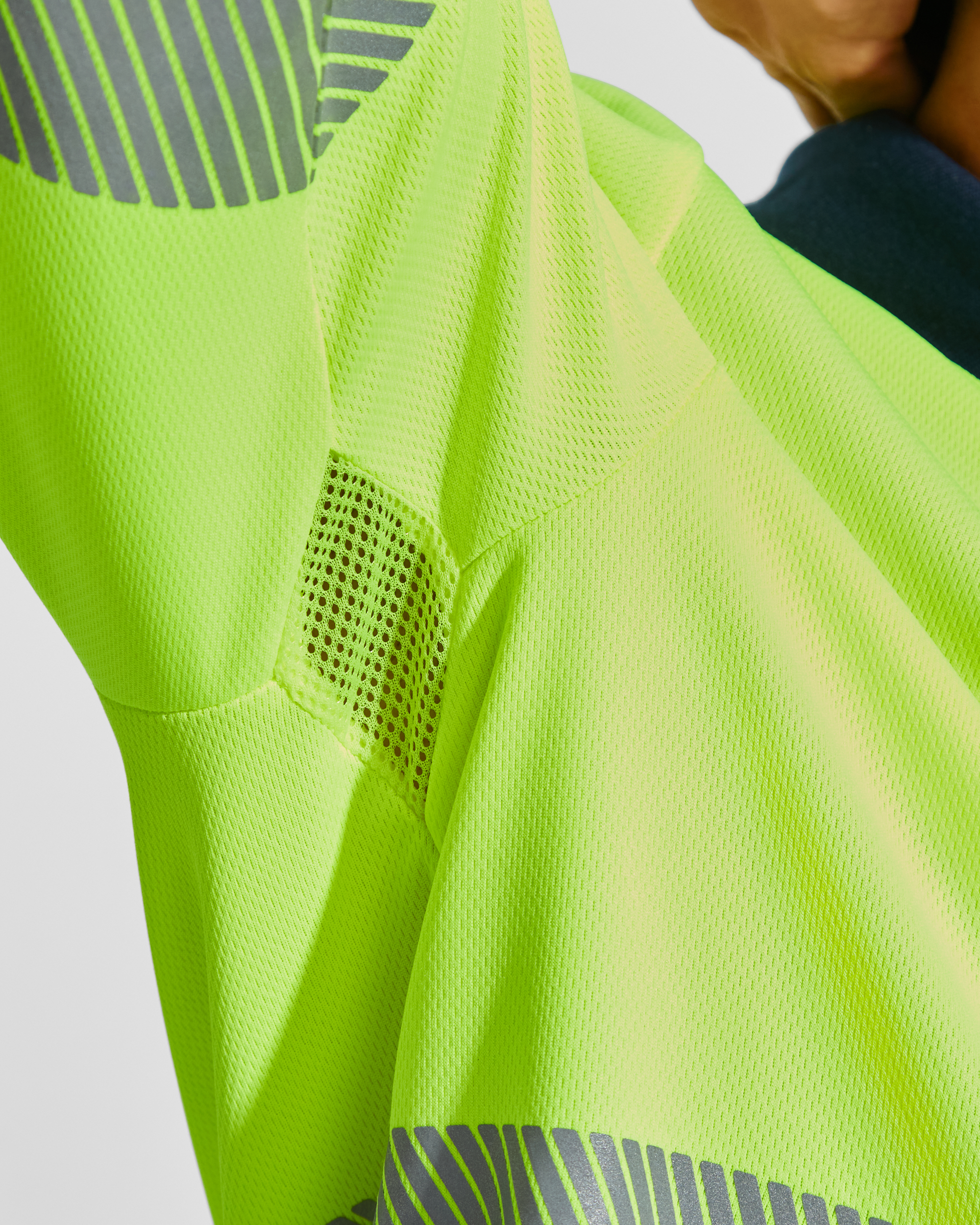 · Dos cintas reflectantes segmentadas en torso y manga.