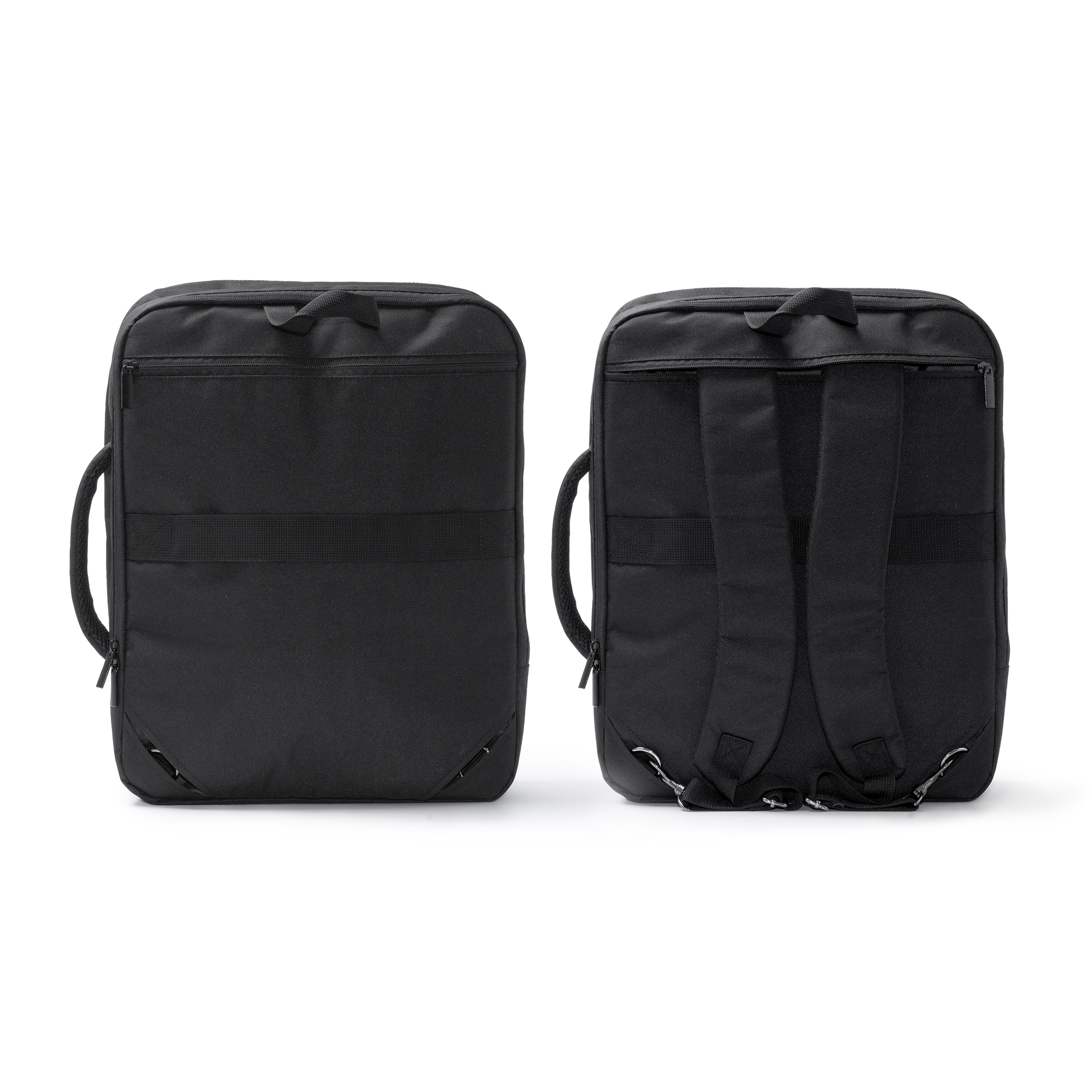 Mochila ejecutiva de viaje realizada en poliéster 300D. Dos bolsillos principales acolchados con compartimentos interiores y bolsillos ideales para portátil 15″ y Tablet. Espalda y cintas acolchadas. Bolsillo para ocultar las cintas y cinta para ajuste en trolley.